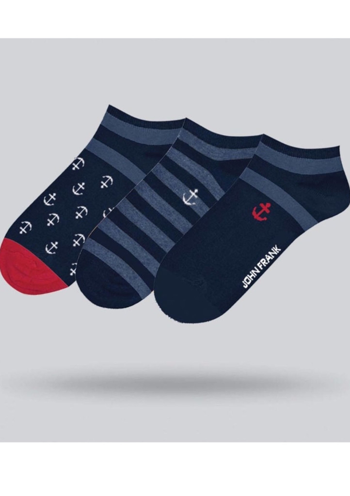 Pánské nízké ponožky značky John Frank. Velikost je univerzální 40-45. Balení obsahuje 3 páry ponožek v různých barvách. Materiálové složení: 80% balvna, 17% polyamid, 3% elastan
