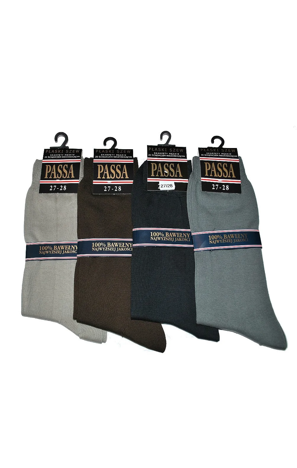 Pánské ponožky, které jsou vyrobené z velmi kvalitní bavlny (100 %). Ponožky jsou jednobarevné a mají pohodlný lem, který při nošení netlačí. Velikosti: 25-26 (39-41), 27-28 (42-44), 29-30 (45-47)