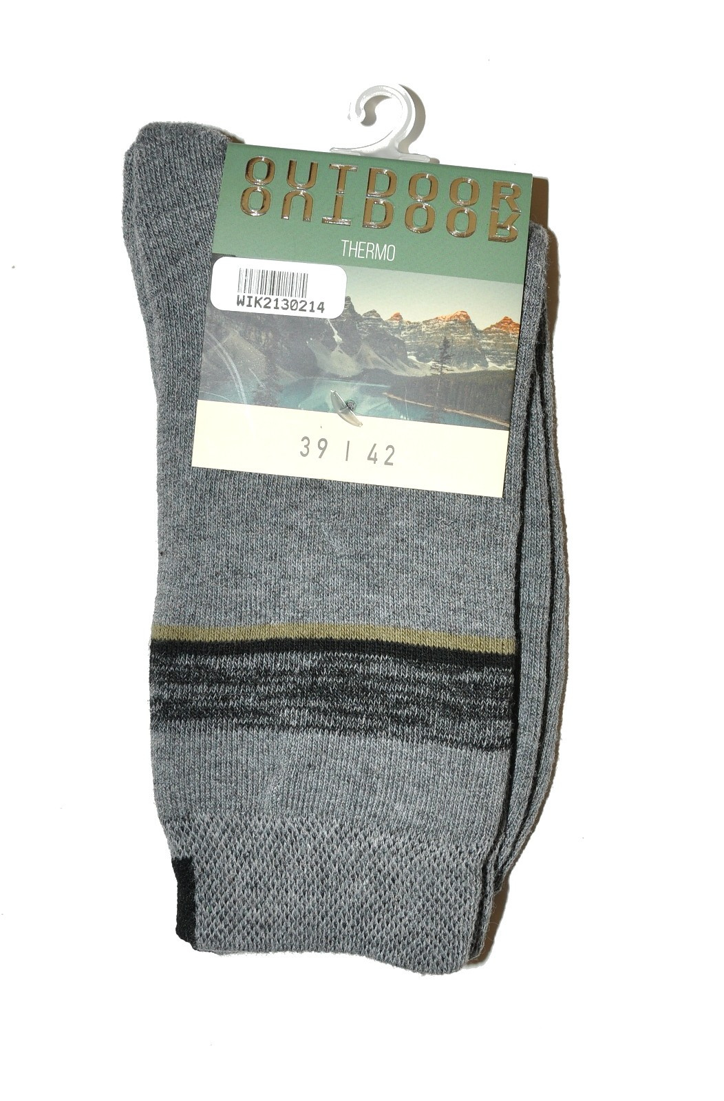 Teplé pánské ponožky. Ponožky jsou na úrovni kotníku ozdobené pruhovaným vzorem. Na vnitřní straně modelu je froté. Složení: 45 % polyester, 35 % bavlna, 17 % polyakryl, 3 % elastan.