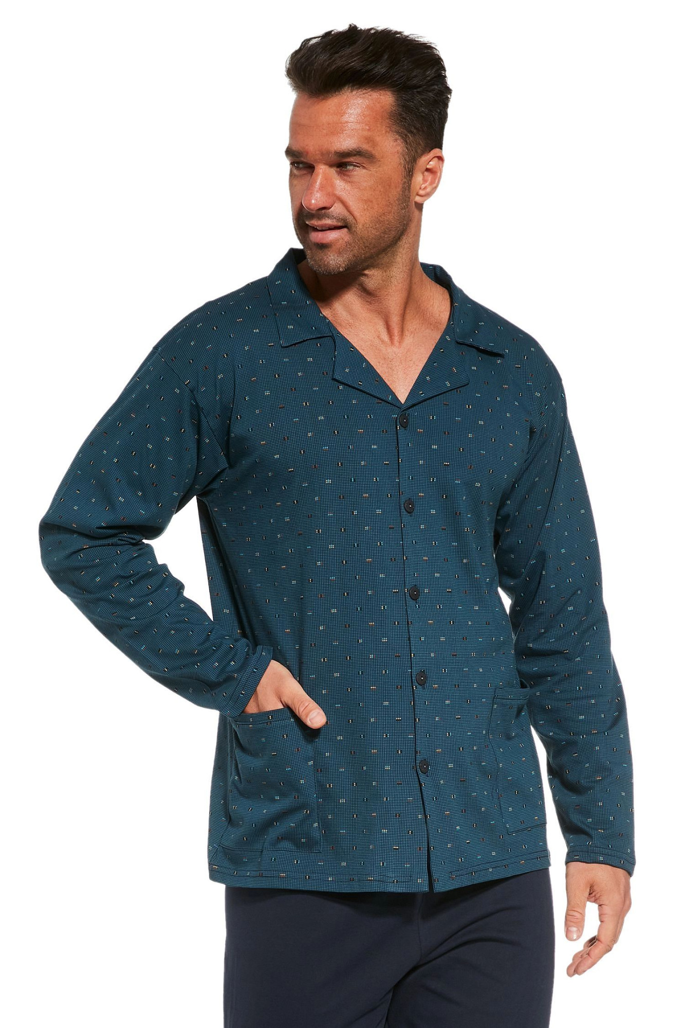 Pánské pyžamo 114/64 CORNETTE - z vysoce jakostní bavlny - tmavě modrá vzorovaná košile s dlouhými rukávy a kapsami - zapínání na knoflíky - pohodlné jednobarevné dlouhé kalhotyMateriálové složení: 100% bavlna Velikosti pro muže S M L XL XXL 3XL 4XL 5XL Obvod hrudníku (cm) 92-96cm 96-100cm 100-104cm 104-108cm 108-112cm 112-116cm 116-122cm 122-128cm Obvod pasu (cm) 82-86cm 86-90cm 90-94cm 94-98cm 98-102cm 102-106cm 106-112cm 112-118cm Výška (cm) 164-170cm 170-176cm 176-182cm 182-188cm 188-194cm 188-194cm 188-194cm 188-194cm Velikosti pro ženy S M L XL XXL 3XL 4XL 5XL Obvod hrudníku (cm) 88-92cm 92-96cm 96-100cm 100-104cm 104-108cm 108-112cm 112-118cm 118-124cm Obvod pasu (cm) 72-76cm 76-80cm 80-84cm 84-88cm 88-92cm 92-96cm 96-102cm 102-108cm Obvod boků (cm) 92-96cm 96-100cm 100-104cm 104-108cm 108-112cm 112-116cm 116-122cm 122-128cm Výška (cm) 158-164cm 164-170cm 164-170cm 170-176cm 176-182cm 176-182cm 176-182cm 176-182cm Dětské velikosti (roky) 2-3 3-4 5-6 7-8 9-10 11-12 13-14 Obvod hrudníku (cm) 50-54cm 54-58cm 58-62cm 62-66cm 66-72cm 72-80cm 80-88cm Obvod pasu (cm) 48-52cm 50-54cm 52-56cm 54-58cm 56-62cm 60-68cm 64-72cm Výška (cm) 86-92cm 98-104cm 110-116cm 122-128cm 134-140cm 146-152cm 158-164cm