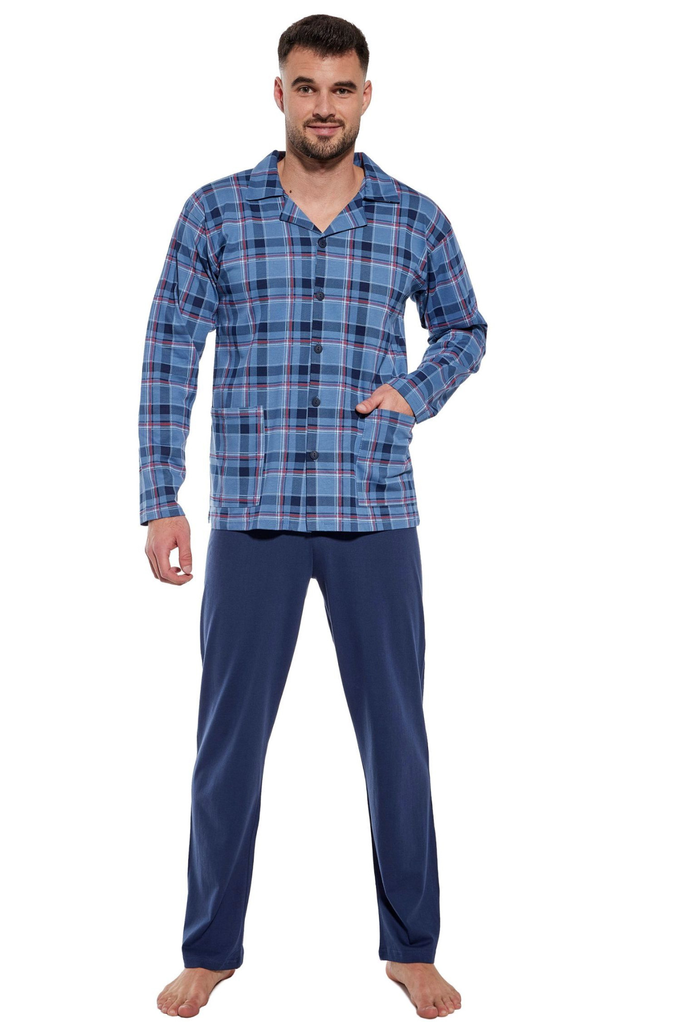 Pánské pyžamo 114/68 CORNETTE - z vysoce jakostní bavlny - světle modrá vzorovaná košile s dlouhými rukávy a kapsami - zapínání na knoflíky - pohodlné jednobarevné dlouhé kalhotyMateriálové složení: 100% bavlna Velikosti pro muže S M L XL XXL 3XL 4XL 5XL Obvod hrudníku (cm) 92-96cm 96-100cm 100-104cm 104-108cm 108-112cm 112-116cm 116-122cm 122-128cm Obvod pasu (cm) 82-86cm 86-90cm 90-94cm 94-98cm 98-102cm 102-106cm 106-112cm 112-118cm Výška (cm) 164-170cm 170-176cm 176-182cm 182-188cm 188-194cm 188-194cm 188-194cm 188-194cm Velikosti pro ženy S M L XL XXL 3XL 4XL 5XL Obvod hrudníku (cm) 88-92cm 92-96cm 96-100cm 100-104cm 104-108cm 108-112cm 112-118cm 118-124cm Obvod pasu (cm) 72-76cm 76-80cm 80-84cm 84-88cm 88-92cm 92-96cm 96-102cm 102-108cm Obvod boků (cm) 92-96cm 96-100cm 100-104cm 104-108cm 108-112cm 112-116cm 116-122cm 122-128cm Výška (cm) 158-164cm 164-170cm 164-170cm 170-176cm 176-182cm 176-182cm 176-182cm 176-182cm Dětské velikosti (roky) 2-3 3-4 5-6 7-8 9-10 11-12 13-14 Obvod hrudníku (cm) 50-54cm 54-58cm 58-62cm 62-66cm 66-72cm 72-80cm 80-88cm Obvod pasu (cm) 48-52cm 50-54cm 52-56cm 54-58cm 56-62cm 60-68cm 64-72cm Výška (cm) 86-92cm 98-104cm 110-116cm 122-128cm 134-140cm 146-152cm 158-164cm