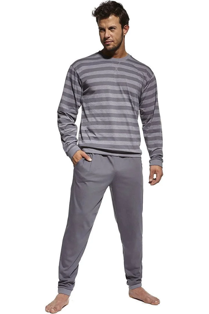 Pánské pyžamo 117/160 Losse 9 CORNETTE - je vyrobené z velmi kvalitní bavlny - grafitové tričko s dlouhými rukávy - ozdobené pruhy - pohodlné jednobarevné dlouhé kalhotyMateriálové složení: 100% bavlna Velikosti pro muže S M L XL XXL 3XL 4XL 5XL Obvod hrudníku (cm) 92-96cm 96-100cm 100-104cm 104-108cm 108-112cm 112-116cm 116-122cm 122-128cm Obvod pasu (cm) 82-86cm 86-90cm 90-94cm 94-98cm 98-102cm 102-106cm 106-112cm 112-118cm Výška (cm) 164-170cm 170-176cm 176-182cm 182-188cm 188-194cm 188-194cm 188-194cm 188-194cm Velikosti pro ženy S M L XL XXL 3XL 4XL 5XL Obvod hrudníku (cm) 88-92cm 92-96cm 96-100cm 100-104cm 104-108cm 108-112cm 112-118cm 118-124cm Obvod pasu (cm) 72-76cm 76-80cm 80-84cm 84-88cm 88-92cm 92-96cm 96-102cm 102-108cm Obvod boků (cm) 92-96cm 96-100cm 100-104cm 104-108cm 108-112cm 112-116cm 116-122cm 122-128cm Výška (cm) 158-164cm 164-170cm 164-170cm 170-176cm 176-182cm 176-182cm 176-182cm 176-182cm Dětské velikosti (roky) 2-3 3-4 5-6 7-8 9-10 11-12 13-14 Obvod hrudníku (cm) 50-54cm 54-58cm 58-62cm 62-66cm 66-72cm 72-80cm 80-88cm Obvod pasu (cm) 48-52cm 50-54cm 52-56cm 54-58cm 56-62cm 60-68cm 64-72cm Výška (cm) 86-92cm 98-104cm 110-116cm 122-128cm 134-140cm 146-152cm 158-164cm