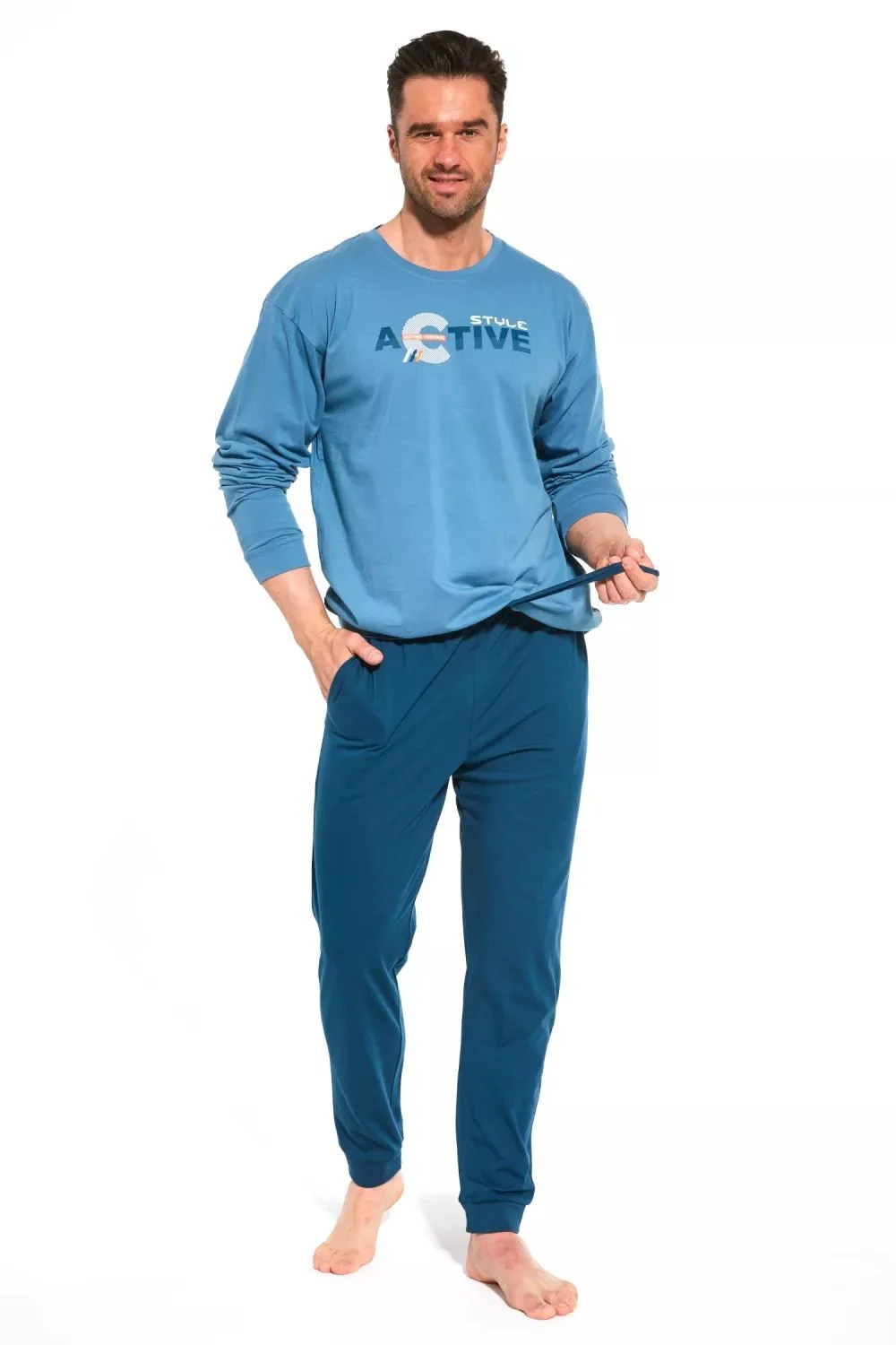 Pánské pyžamo 322/205 Active CORNETTE - z vysoce jakostní bavlny - světle modré tričko s dlouhými rukávy - na přední straně ozdobené potiskem - pohodlné dlouhé jednobarevné kalhotyMateriálové složení: 100% bavlna Velikosti pro muže S M L XL XXL 3XL 4XL 5XL Obvod hrudníku (cm) 92-96cm 96-100cm 100-104cm 104-108cm 108-112cm 112-116cm 116-122cm 122-128cm Obvod pasu (cm) 82-86cm 86-90cm 90-94cm 94-98cm 98-102cm 102-106cm 106-112cm 112-118cm Výška (cm) 164-170cm 170-176cm 176-182cm 182-188cm 188-194cm 188-194cm 188-194cm 188-194cm Velikosti pro ženy S M L XL XXL 3XL 4XL 5XL Obvod hrudníku (cm) 88-92cm 92-96cm 96-100cm 100-104cm 104-108cm 108-112cm 112-118cm 118-124cm Obvod pasu (cm) 72-76cm 76-80cm 80-84cm 84-88cm 88-92cm 92-96cm 96-102cm 102-108cm Obvod boků (cm) 92-96cm 96-100cm 100-104cm 104-108cm 108-112cm 112-116cm 116-122cm 122-128cm Výška (cm) 158-164cm 164-170cm 164-170cm 170-176cm 176-182cm 176-182cm 176-182cm 176-182cm Dětské velikosti (roky) 2-3 3-4 5-6 7-8 9-10 11-12 13-14 Obvod hrudníku (cm) 50-54cm 54-58cm 58-62cm 62-66cm 66-72cm 72-80cm 80-88cm Obvod pasu (cm) 48-52cm 50-54cm 52-56cm 54-58cm 56-62cm 60-68cm 64-72cm Výška (cm) 86-92cm 98-104cm 110-116cm 122-128cm 134-140cm 146-152cm 158-164cm