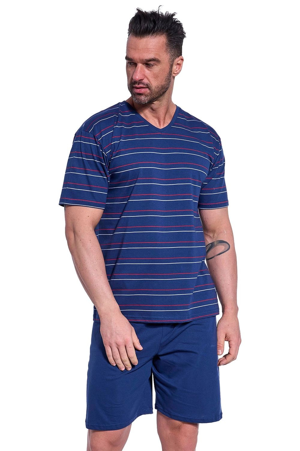 Pánské pyžamo 330/48 Various CORNETTE - tmavě modrá barva - z velmi kvalitní bavlny - pruhované tričko s krátkými rukávy - jednobarevné kraťasyMateriálové složení: 100% bavlna Velikosti pro muže S M L XL XXL 3XL 4XL 5XL Obvod hrudníku (cm) 92-96cm 96-100cm 100-104cm 104-108cm 108-112cm 112-116cm 116-122cm 122-128cm Obvod pasu (cm) 82-86cm 86-90cm 90-94cm 94-98cm 98-102cm 102-106cm 106-112cm 112-118cm Výška (cm) 164-170cm 170-176cm 176-182cm 182-188cm 188-194cm 188-194cm 188-194cm 188-194cm Velikosti pro ženy S M L XL XXL 3XL 4XL 5XL Obvod hrudníku (cm) 88-92cm 92-96cm 96-100cm 100-104cm 104-108cm 108-112cm 112-118cm 118-124cm Obvod pasu (cm) 72-76cm 76-80cm 80-84cm 84-88cm 88-92cm 92-96cm 96-102cm 102-108cm Obvod boků (cm) 92-96cm 96-100cm 100-104cm 104-108cm 108-112cm 112-116cm 116-122cm 122-128cm Výška (cm) 158-164cm 164-170cm 164-170cm 170-176cm 176-182cm 176-182cm 176-182cm 176-182cm Dětské velikosti (roky) 2-3 3-4 5-6 7-8 9-10 11-12 13-14 Obvod hrudníku (cm) 50-54cm 54-58cm 58-62cm 62-66cm 66-72cm 72-80cm 80-88cm Obvod pasu (cm) 48-52cm 50-54cm 52-56cm 54-58cm 56-62cm 60-68cm 64-72cm Výška (cm) 86-92cm 98-104cm 110-116cm 122-128cm 134-140cm 146-152cm 158-164cm