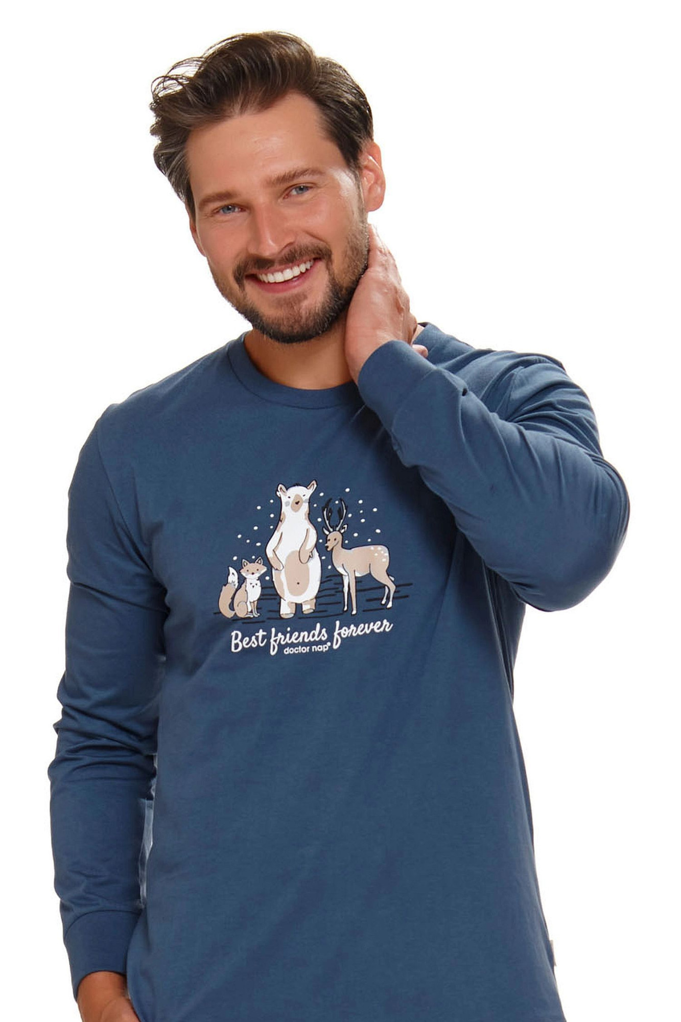 Pánské pyžamo 4329 Doctor Nap - vyrobené z velmi kvalitní a příjemné bavlny - modré tričko s dlouhými rukávy - na přední straně ozdobené potiskem - dlouhé vzorované kalhotyMateriálové složení: 100% bavlna