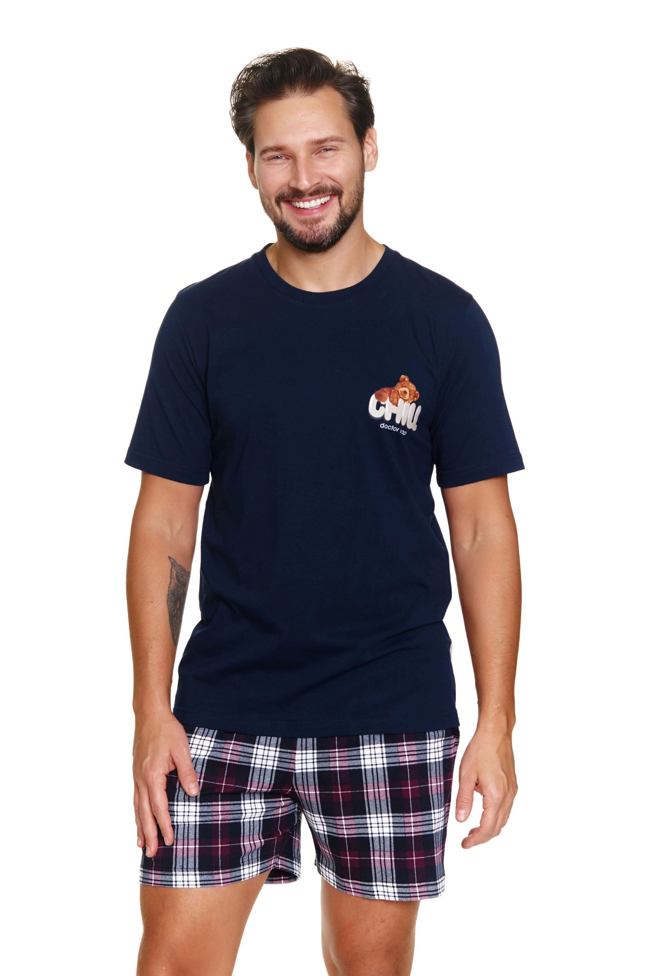 Pánské pyžamo 7201 blue Doctornap - z vysoce jakostní bavlny - tmavě modré tričko s krátkými rukávy - ozdobené potiskem na přední straně - kárované šortky s kapsami na bocích - certifikát OEKO-TEX Standard 100Materiálové složení: 100% bavlna