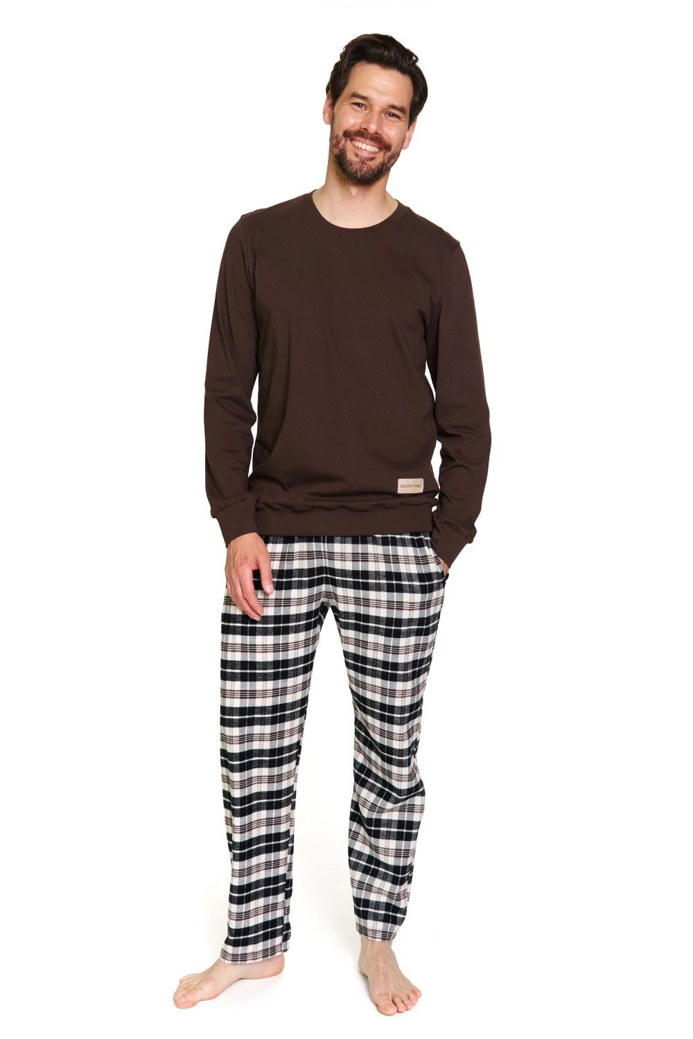 Pánské pyžamo 7334 plus Doctornap - z vysoce jakostní bavlny - hnědé tričko s dlouhými rukávy - dlouhé kárované flanelové kalhoty s kapsami - rukávy zakončené manžetamiMateriálové složení: 100% bavlna
