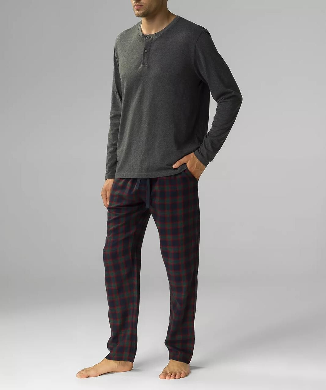 Pánská pyžama - měkká a příjemná pletenina s jedinečným "broskvovým efektem" - na dotek působí jako broskvová kůže - halenka s dlouhými rukávy - kulatý výstřih se zapínáním na knoflíky - volné kalhoty - károvaný potisk - v pase šňůrka na stažení - pohodlné boční kapsy   Složení: modrozelená barva 100% bavlna barva: šedočervená halenka 65 % polyester, 35 % bavlna; kalhoty 100 % bavlna