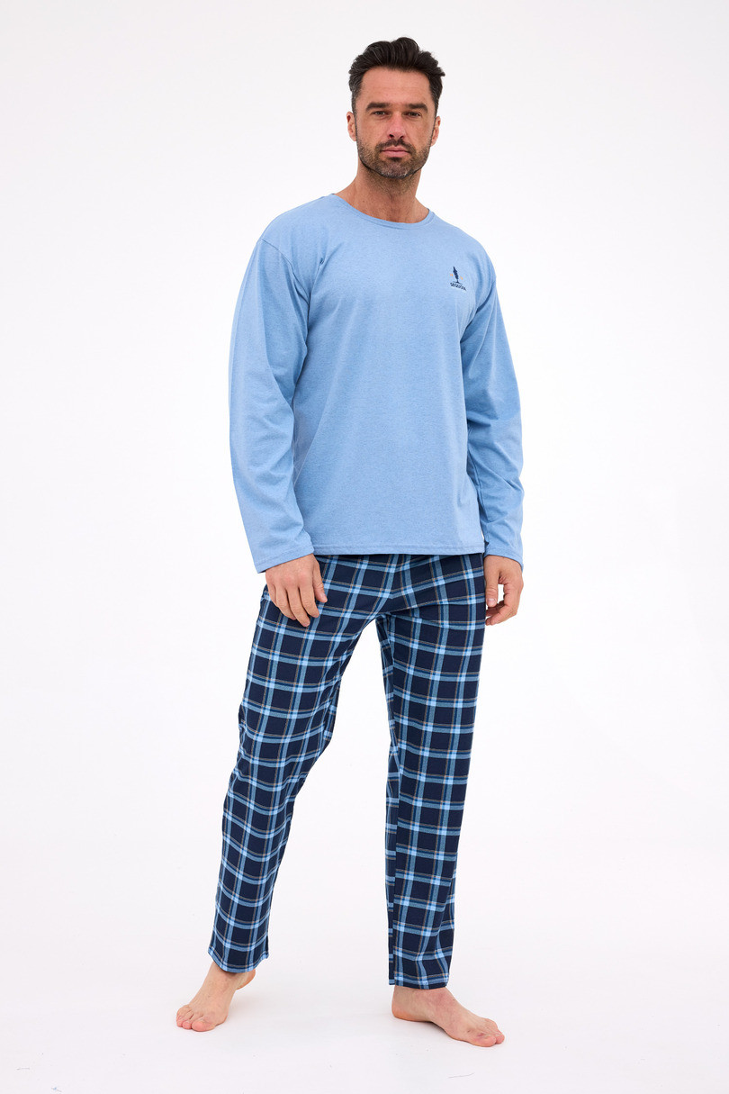 Pánské pyžamo DR 124/308 BIG Sequoia značky Cornette je dokonalou kombinací pohodlí a nadčasového stylu. Tričko s dlouhými rukávy a kulatým výstřihem, vyrobené ze směsi 80 % bavlny a 20 % polyesteru, je měkké, příjemné na dotek a odolné vůči častému praní. Jemný potisk na hrudi dodává sportovní nádech. Kalhoty s módním kostkovaným vzorem, vyrobené ze 100 % přírodní bavlny, zaručují volnost pohybu a tepelný komfort. Elastický pás lemovaný bavlnou zajišťuje pohodlné nošení bez jakéhokoli tlaku. Jedná se o praktickou soupravu, která se bude skvěle hodit na spaní i domácí odpočinek..