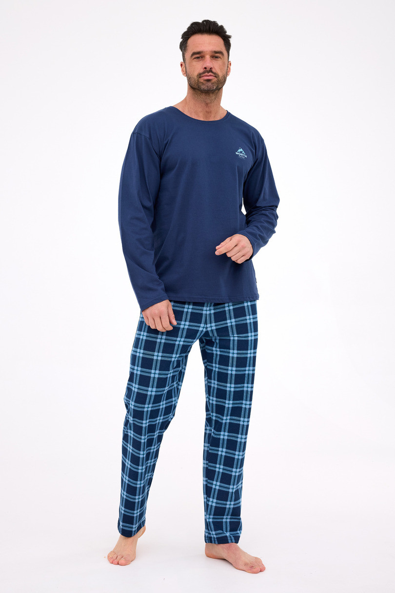 Pánské pyžamo DR 124/314 NORTH značky Cornette je kombinací pohodlí, kvality a klasického designu. Tričko s krátkým rukávem, vyrobené ze 100% měkké, prodyšné bavlny, má kulatý výstřih a decentní potisk na hrudi. Dlouhé kalhoty s módním kostkovaným vzorem jsou vyrobeny ze směsi 80 % bavlny a 20 % polyesteru, což zajišťuje odolnost a pohodlí. Elastický pas, lemovaný bavlnou, zaručuje dokonalé přizpůsobení bez otlaků. Toto pyžamo je ideální na spaní i domácí odpočinek..