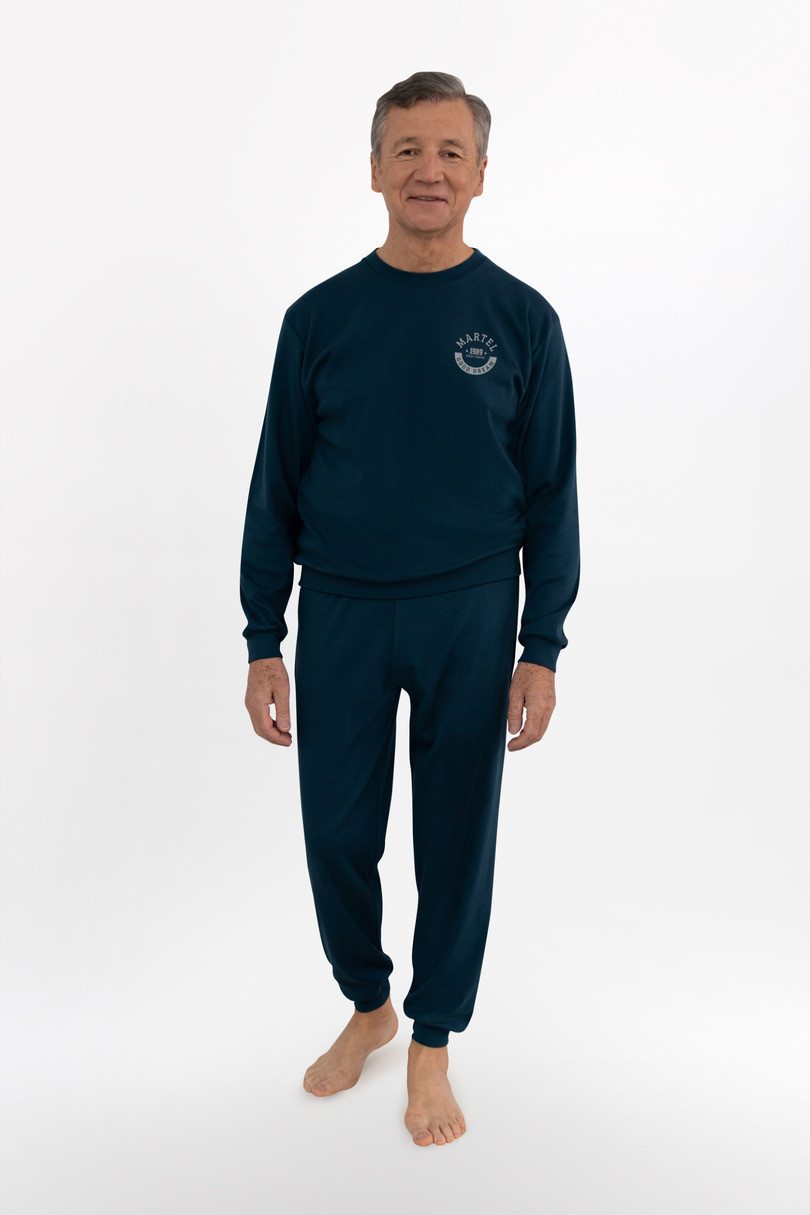 Pánské pyžamo s dlouhými rukávy. Pyžamo je ušité z neobyčejně měkké bavlny. Kulatý výstřih, rukávy a nohavice jsou olemované stahovacími lemy. Složení: 100 % bavlna.