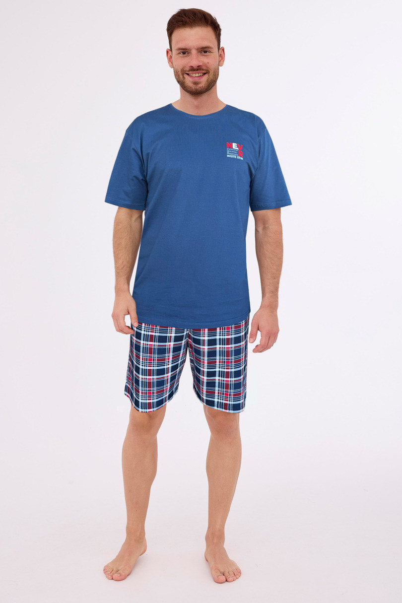 Pánské pyžamo z kvalitní měkké bavlny. Tričko s krátkým rukávem, jemný potisk na hrudi, krátké kostkované šortky. Dodáváno v krabici. Složení: 100% bavlna .