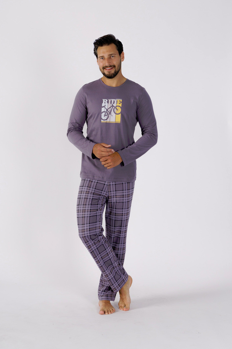 Pánské pyžamo z vysoce kvalitní bavlny, blůza s dlouhými rukávy, kulatý výstřih, přední díl s potiskem, dlouhé rovné kalhoty, Složení: 100% bavlna .