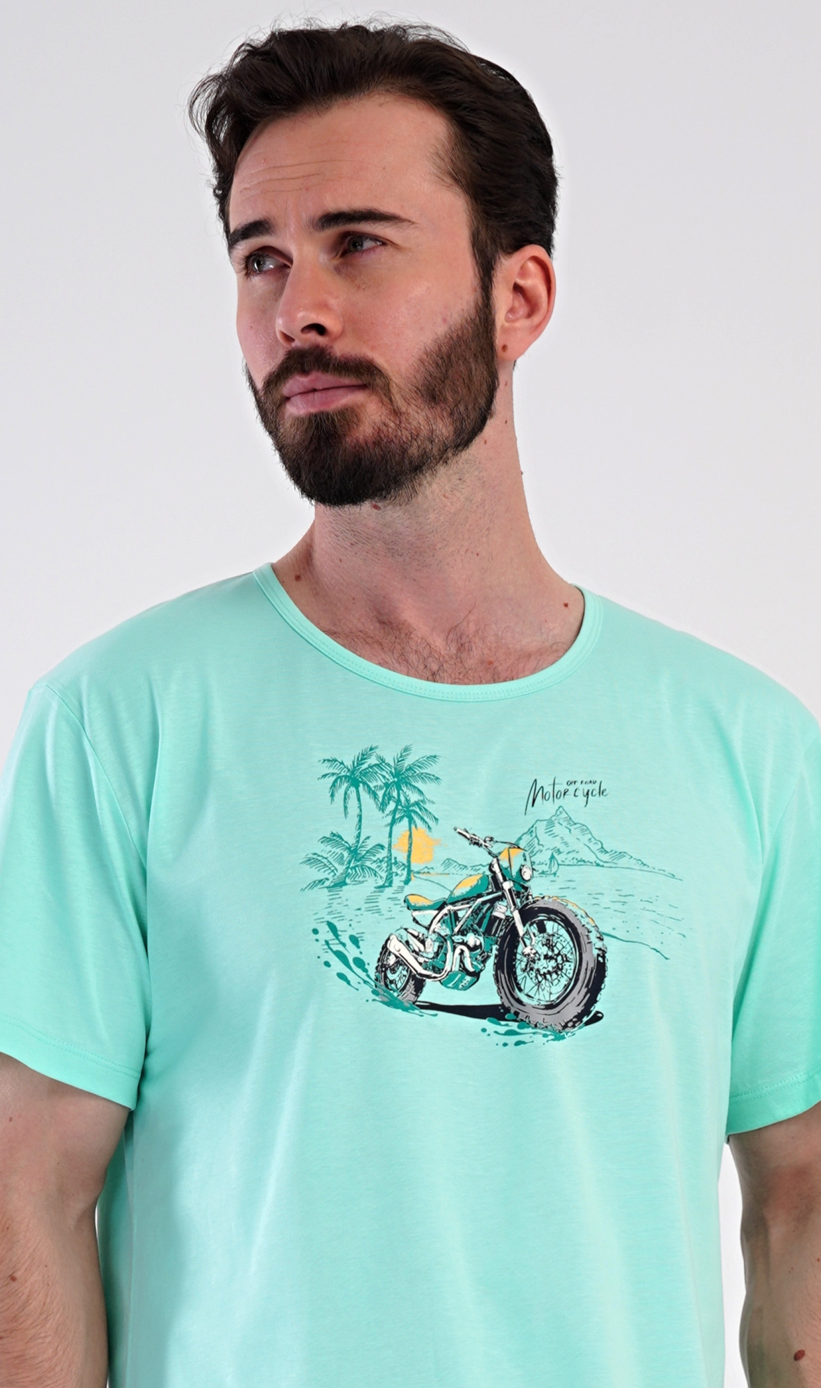 Pánské bavlněné šortkové pyžamo Pavel. Pánské pyžamo se skládá z trička s krátkým rukávem a krátkých šortkových kalhot. Na jednobarevném tričku je obrázek terénní motorky. Šortky mají praktické kapsy, v pase gumu a šňůrku na stáhnutí. Použitý materiál s podílem bavlny 100% je příjemný a poddaný na dotek. Pyžamo je vhodné i na denní nošení a oceníte ho obzvlášť v horkých letních dnech. Pokyny pro údržbu: - 100% bavlna - lze prát v pračce při teplotě do 30° - nesušit v sušičce - žehlit z rubu do 110° - nepoužívat bělící prostředky - nečistit chemicky Míry naměřené na výrobku: 4084440000 Pavel M L XL XXL obvod hrudníku 106 110 114 118 délka trika 69 71 73 75 pas 76-88 78-90 84-96 90-102