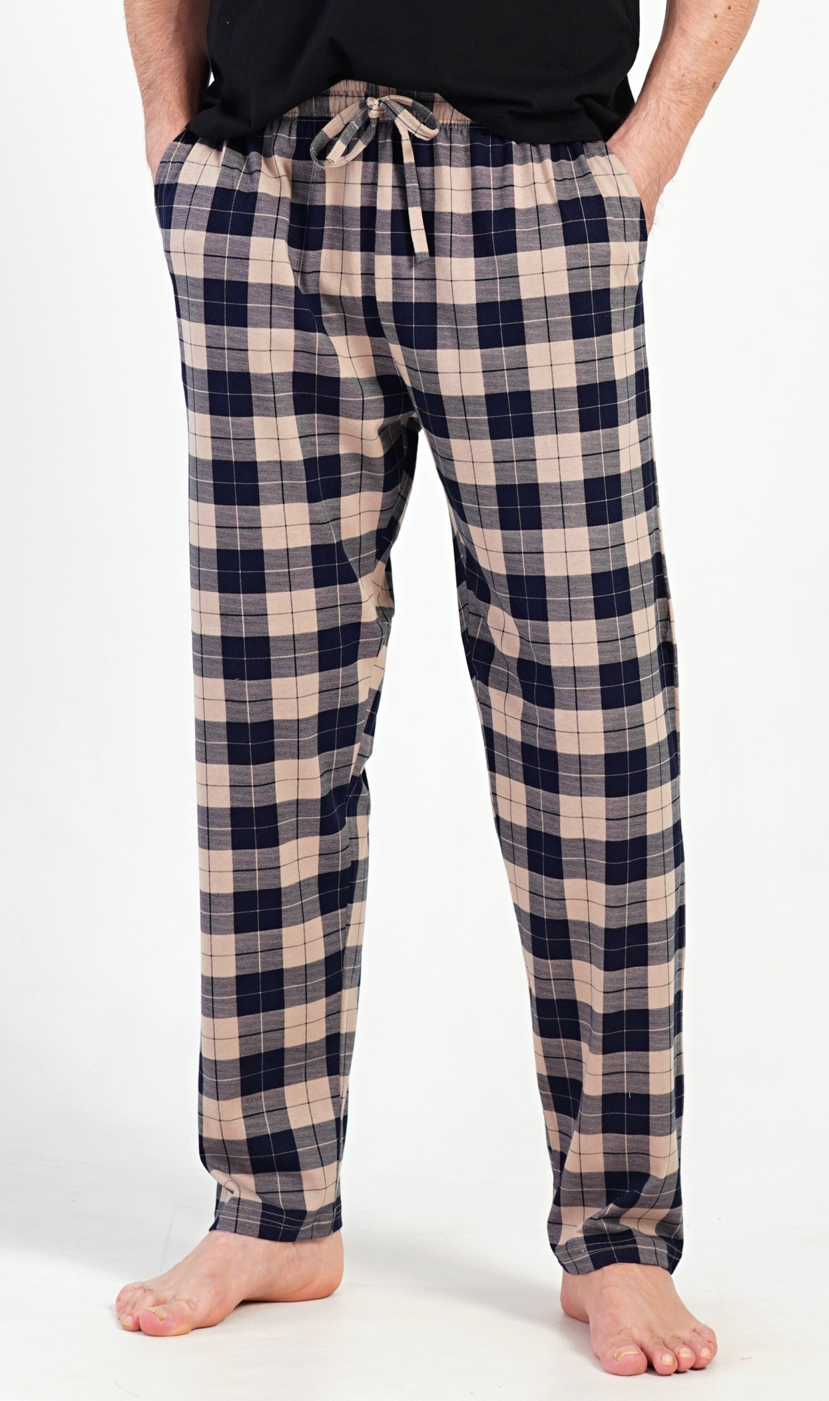 Pánské bavlněné pyžamové kalhoty Marko. Kostkované kalhoty mají v pase gumu, šňůrku na stažení a praktické kapsy. Mateiriál s podílem bavlny 100% je příjemný a poddajný na dotek. Pokyny pro údržbu: - 100% bavlna- lze prát v pračce při teplotě do 30°- nesušit v sušičce- žehlit z rubu do 110°- nepoužívat bělící prostředky- nečistit chemicky Míry naměřené na výrobku: 4081250147 Marko M L XL XXL pas 72-84 74-86 82-94 88-100 délka nohavic 100 101 102 103