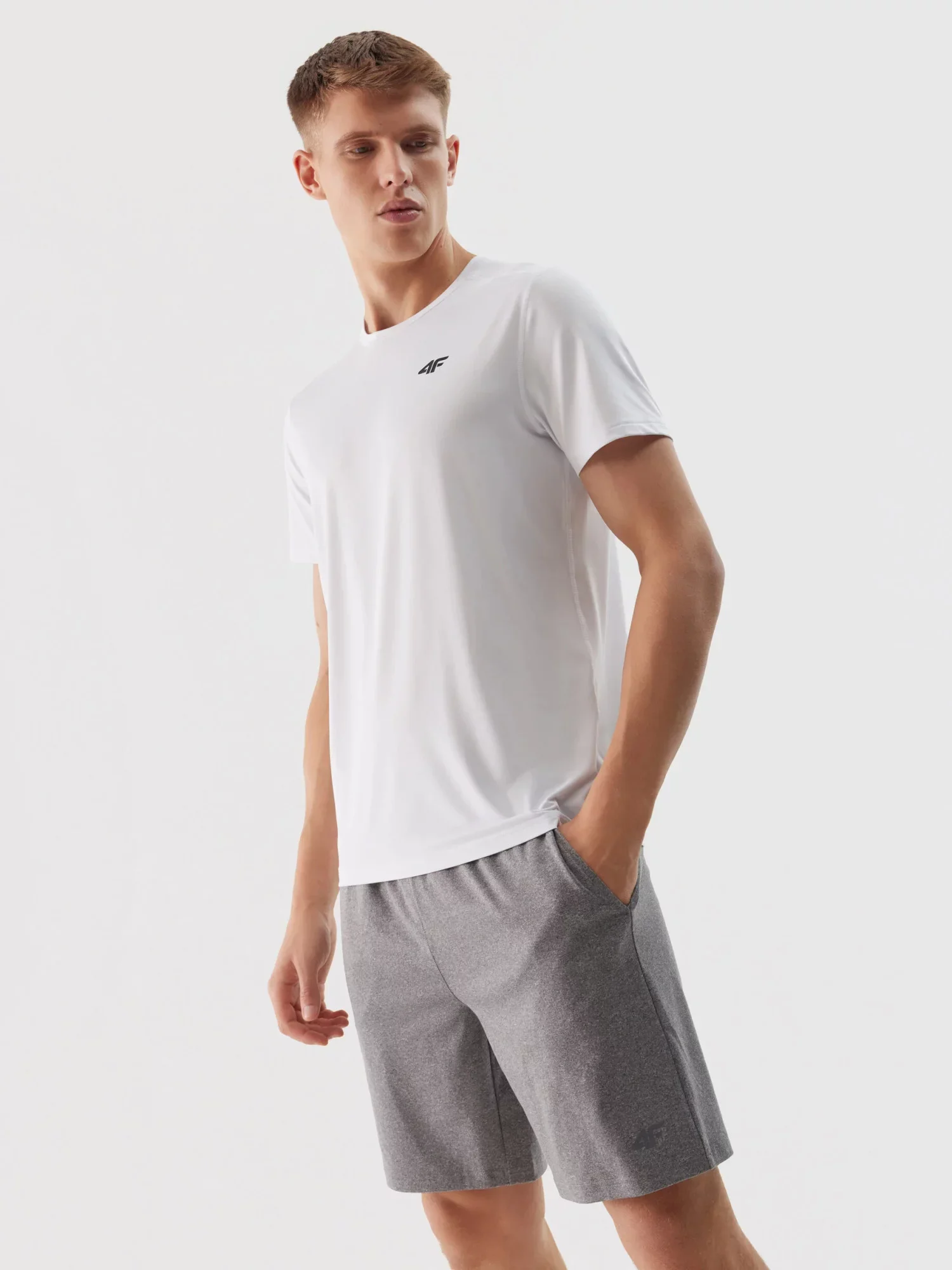 Hlavním cílem oblečení ze sportovní řady je poskytnout pohodlí a podporu při jakémkoli typu tréninku různé úrovně a intenzity. Díky rychleschnoucím, elastickým materiálům a pohodlnému střihu poskytují šortky plnou volnost pohybu a umožňují maximální soustředění a pohodlí během cvičení. Mají střih regular, který se pohodlně přizpůsobí postavě. Vazba na obou stranách interlock pleteniny je stejná. Materiál je odolný a zároveň měkký, dobře padne a absorbuje vlhkost. Šortky jsou bez podšívky, takže jsou lehčí a vhodné pro trénink v teplejších dnech. Mají střední pás a krátké nohavice. Krátké sportovní šortky jsou vyrobeny ze syntetického materiálu, který zajišťuje odolnost a snadno se udržuje. Díky přídavku elastanu (8%) jsou mírně elastické a pohodlně sedí na postavě. Pánské krátké sportovní šortky s rychleschnoucími vlákny s technologií 4FDry, která podporují odvádění vlhkosti daleko od těla. 2 otevřené boční kapsy. Elastický pás s vnitřním nastavením na šňůrku zajistí přizpůsobení. Pánské sportovní šortky - VLASTNOSTI: střední pás rozsah velikostí: S-3XL střih: regular, který se pohodlně přizpůsobí postavě krátké nohavice vyrobeny ze syntetického materiálu, který zajišťuje odolnost a snadno se udržuje mírně elastický materiál díky přidanému elastanu (8%) jednotné barevné provedení doplňující každou stylizaci měkká a odolná interlock pletenina s hladkou strukturou na obou stranách vnitřek bez podšívky 2 otevřené boční kapsy elastický pás s vnitřním nastavením na šňůrku rychleschnoucí vlákna s technologií 4FDry odvádějí vlhkost Materiál: Polyester 92%, Elastan 8%
