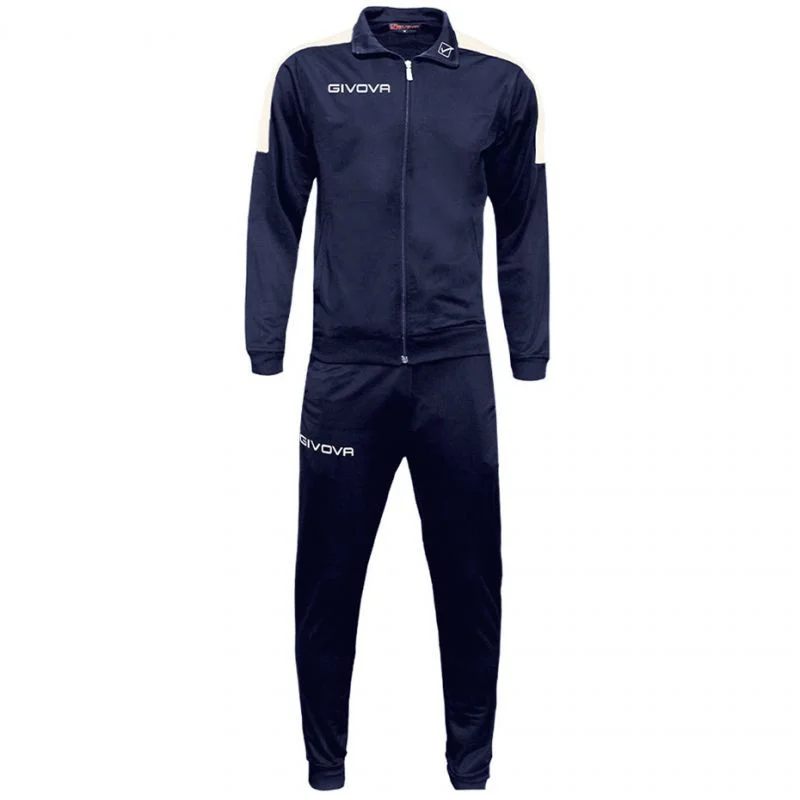Dres Givova Tuta Revolution M TR033 0403Właściwości:męski dres Givvoa Revolution składa się z rozpinanej bluzy i długich spodnibluza z wysokim kołnierzem została wyposażona w kostkowy zamek na całej długościprążkowane ściągacze w nogawkach i rękawach oraz na dole bluzyboczne, otwarte kieszenie w bluzie i spodniach są wygodnym miejscem na ogrzanie dłoni i przechowywanie podręcznych drobiazgówregulowana sznurkiem talia z gumkącałość została wykonana z poliestrowego materiału, podszytego mikropolaremkontrastowe lampasy na rękawach i wyszywane logo markiMateriał:poliesterKolor:granatowybiały