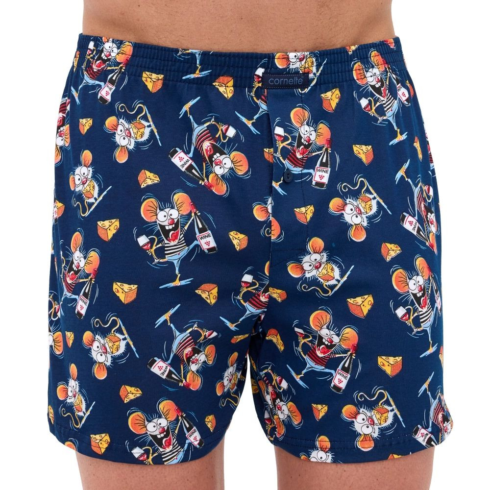 Pánské trenýrky 001/176 Classic CORNETTE - tmavě modrá barva - z vysoce jakostní bavlny - se zábavným potiskem - volný střih modelu je zárukou pohodlí, které potřebuje a ocení každý muž - pohodlná guma v pase je obšitá bavlnou - rozparek se zapíná na knoflíčekMateriálové složení: 100% bavlna Velikosti pro muže S M L XL XXL 3XL 4XL 5XL Obvod hrudníku (cm) 92-96cm 96-100cm 100-104cm 104-108cm 108-112cm 112-116cm 116-122cm 122-128cm Obvod pasu (cm) 82-86cm 86-90cm 90-94cm 94-98cm 98-102cm 102-106cm 106-112cm 112-118cm Výška (cm) 164-170cm 170-176cm 176-182cm 182-188cm 188-194cm 188-194cm 188-194cm 188-194cm Velikosti pro ženy S M L XL XXL 3XL 4XL 5XL Obvod hrudníku (cm) 88-92cm 92-96cm 96-100cm 100-104cm 104-108cm 108-112cm 112-118cm 118-124cm Obvod pasu (cm) 72-76cm 76-80cm 80-84cm 84-88cm 88-92cm 92-96cm 96-102cm 102-108cm Obvod boků (cm) 92-96cm 96-100cm 100-104cm 104-108cm 108-112cm 112-116cm 116-122cm 122-128cm Výška (cm) 158-164cm 164-170cm 164-170cm 170-176cm 176-182cm 176-182cm 176-182cm 176-182cm Dětské velikosti (roky) 2-3 3-4 5-6 7-8 9-10 11-12 13-14 Obvod hrudníku (cm) 50-54cm 54-58cm 58-62cm 62-66cm 66-72cm 72-80cm 80-88cm Obvod pasu (cm) 48-52cm 50-54cm 52-56cm 54-58cm 56-62cm 60-68cm 64-72cm Výška (cm) 86-92cm 98-104cm 110-116cm 122-128cm 134-140cm 146-152cm 158-164cm