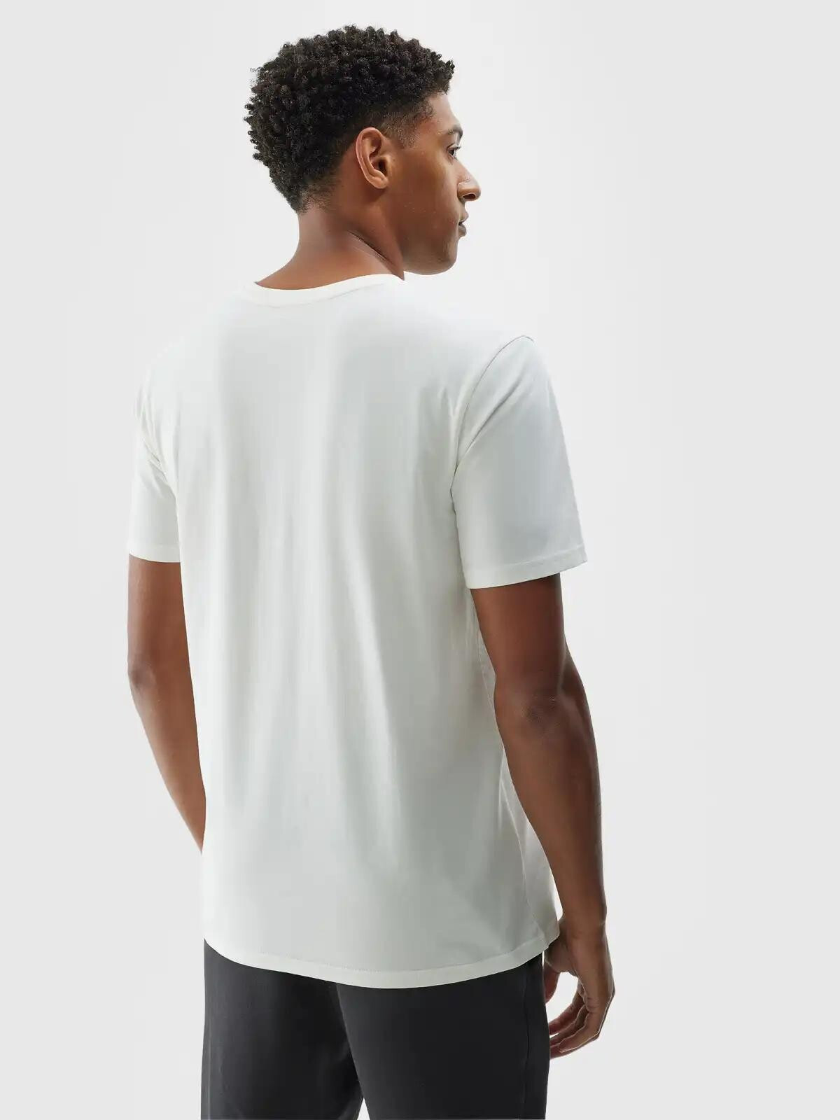 Pánské tričko s potiskem od značky 4F je ideální jako součást casualových i sportovních každodenních stylizací. Má střih regular, který pohodlně sedí na těle a poskytuje volnost pohybu, a standardní délku sahající k linii boků. Tričko je vyrobeno ze 100% bavlny, díky čemuž je měkké, prodyšné a příjemné na dotek. Kulatý výstřih je zakončen jemným žebrováním pro lepší přilnavost a pohodlí při nošení. Na přední straně je umístěn potisk s motivem hory a nápisem „FOB Free On Board“, který podtrhuje outdoorový a dobrodružný charakter modelu.