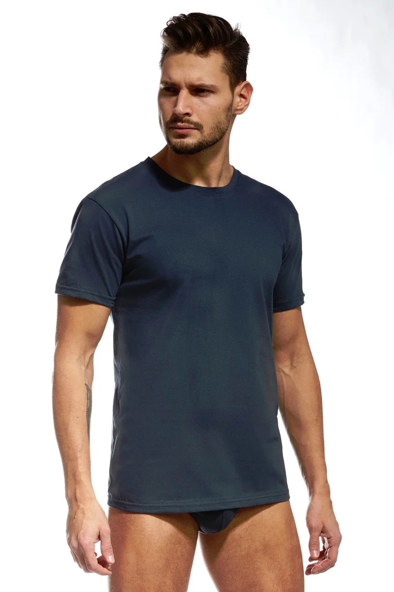 Pánské tričko s krátkými obepnutými rukávy. Má polokulatý výstřih a je ušité z kvalitní 100% bavlny. Na rukávu je kovové logo Cornette.