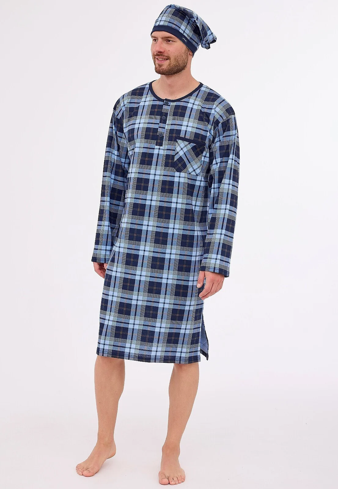 Pánská noční košile - s dlouhými rukávy - vysoce kvalitní bavlna - půlkruhový výstřih se třemi knoflíky - odpovídající župan Materiál: 100% bavlna