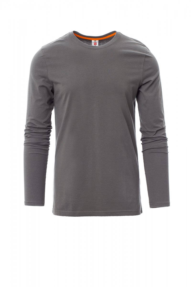 Pánské tričko s dlouhým rukávem a kulatým výstřihem, 1,5 cm pružný žebrovaný lem ze směsi spandex u krku s vrchním prošíváním na přední straně, barevně kontrastní vyztužovací páska od ramene k rameni viditelná na límečku, pružné švy, postranní sešití.