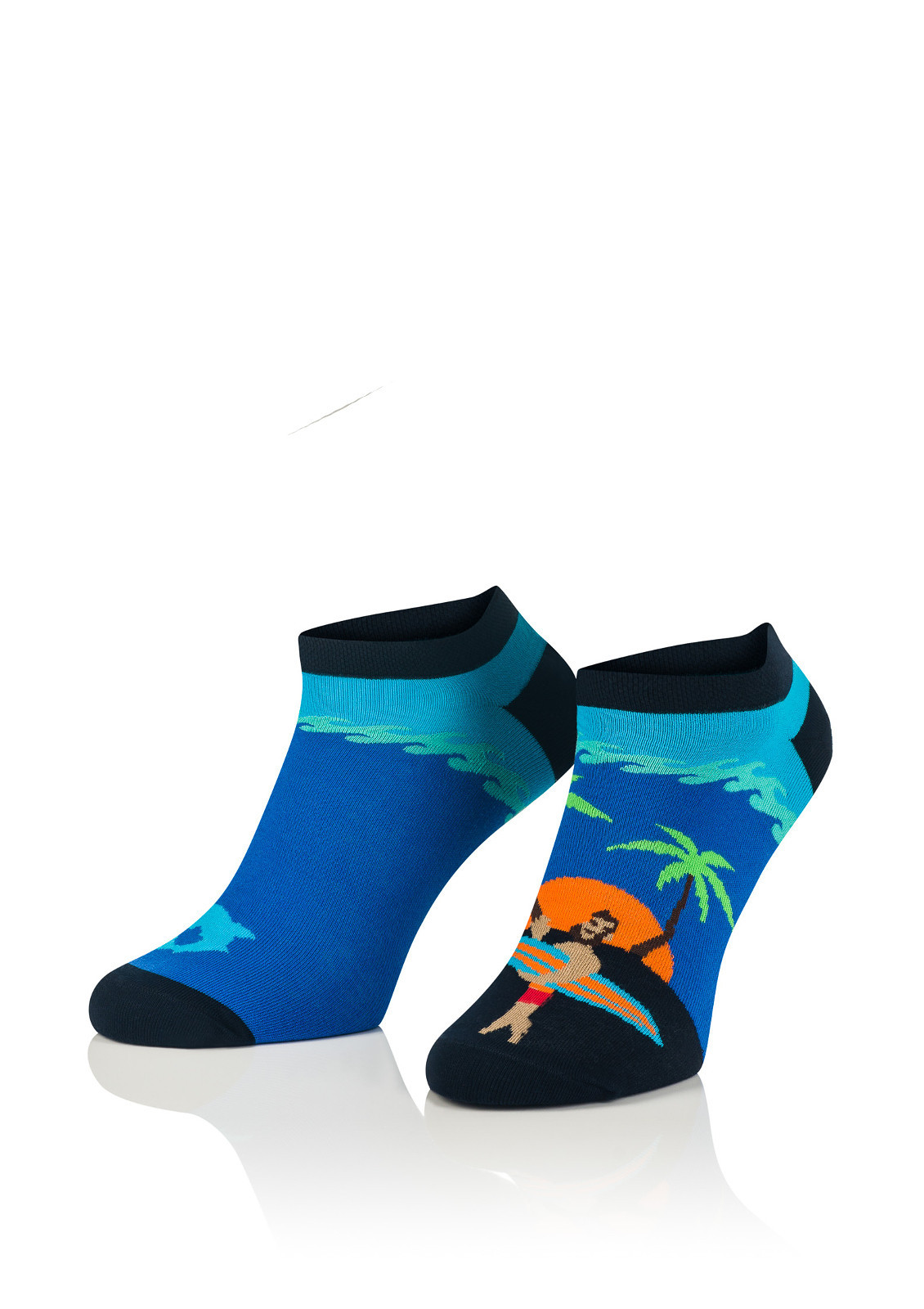 Vzorované pánské ponožky, které jsou vyrobené z velmi kvalitní bavlny. Ploché švy a lem, který při nošení netlačí, jsou zárukou pohodlí a komfortu. Dostupné barvy, které jsou vybírány náhodně: černá, bílá, tyrkysová, chrpová. Složení: 78 % bavlna, 20 % polyamid, 2 % elastan.