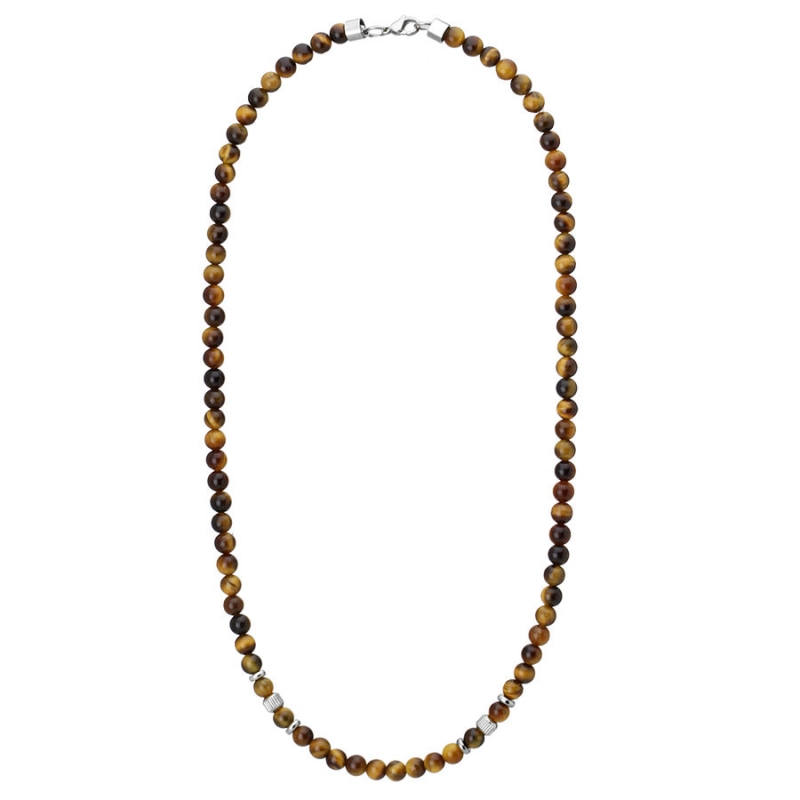 Domů Oblečení a móda Módní doplňky Šperky Náhrdelníky Pánský korálkový náhrdelník Christian - 6 mm přírodní Tygří oko, Hnědá 60 cm