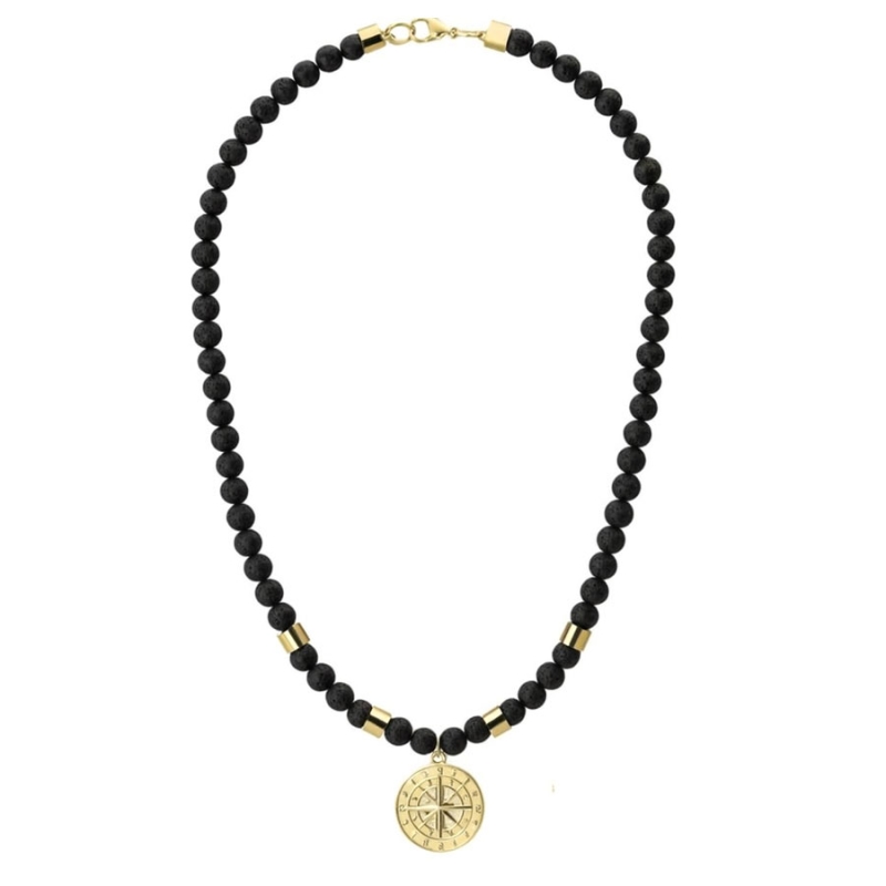 Tento pánský náhrdelník z lávového kamene přitahuje pozornost svou výraznou siluetou a dokonale vyváženou kombinací černé a zlaté barvy. Matné korálky z lávového kamene vytvářejí kontrast k lesklým prvkům z chirurgické oceli, které celý šperk pozvedají na vyšší estetickou úroveň. V jeho středu dominuje přívěsek s motivem větrné růžice – symbol cesty, orientace a osobního směru. Je to náhrdelník, který v sobě nese víc než jen dekorativní hodnotu. Vyjadřuje vnitřní sílu, stálost a touhu po dobrodružství. Ideální pro muže, kteří hledají šperk s hlubším významem a zároveň vysoce stylový doplněk do městského prostředí i do přírody. Větrná růžice, symbolizovaná medailonkem na náhrdelníku, má svůj původ ve starých námořnických tradicích. Tento symbol je spojen s navigací a orientací. Větrná růžice představuje cestu a směr, kterým bychom měli jít ve svém životě. Je symbolem svobody, dobrodružství a odvahy. 💡 Tip: Noste tento náhrdelník přes jednoduché bílé tričko nebo lněnou košili – nechá vyniknout přívěsek i kontrastní barvy, ideální pro ležérní i etno styl.