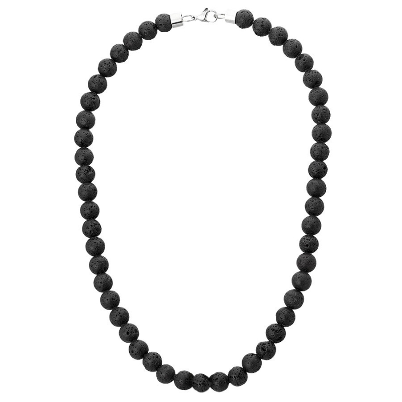 Pánský korálkový náhrdelník Fernando - 8 mm lávový kámen, chirurgická ocel, Černá 50 cm