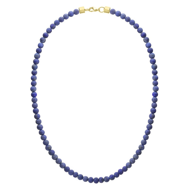 Elegantní, decentní a přitom nepřehlédnutelný – tento pánský náhrdelník z matného lapisu lazuli přináší harmonii mezi přírodní surovostí a precizním zpracováním. Každý korálek o průměru 6 mm má unikátní kresbu a sametově modrý povrch, který zaujme svou klidnou hloubkou. Zlaté detaily z chirurgické oceli vnášejí do celku noblesní kontrast, aniž by působily okázale.V jednoduchosti je síla – právě to vystihuje charakter tohoto šperku, který vyniká čistým tvarem a nadčasovým pojetím. Minimalistické pánské šperky jsou aktuálním trendem, a právě proto je tento náhrdelník must-have doplňkem sezóny. Hodí se pro každodenní nošení i formálnější příležitosti.Lapis lazuli není jen estetický kámen, ale i symbol moudrosti, vnitřního klidu a vhledu. V kombinaci se zlatými akcenty vytváří šperk, který vyzařuje klidnou sílu, eleganci a sebevědomí. Ideální volba pro muže, kteří si zakládají na stylu, ale neztrácejí kontakt s tím, co je pravé a přirozené. 💡 Tip: Skvělý doplněk na letní dovolenou, večer na pláži nebo setkání s přáteli – působí uvolněně, ale přitom upraveně.