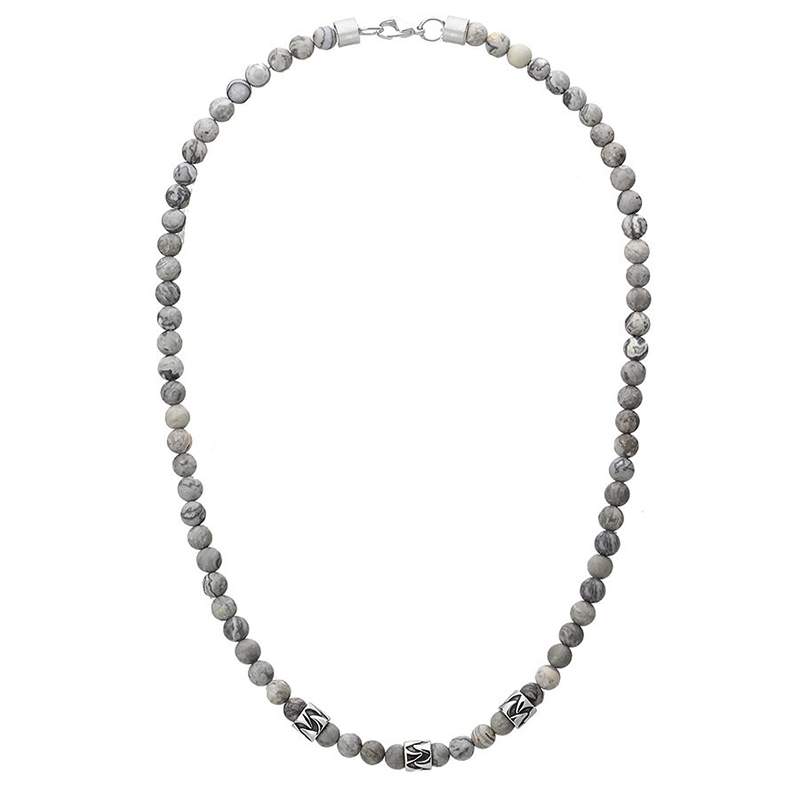 Tento pánský náhrdelník je jedinečnou kombinací přírodního jaspisu a chirurgické oceli, která spojuje eleganci s mužným charakterem. Jemně matné korálky jaspisu s unikátní kresbou přírodních žil dodávají šperku originální vzhled, zatímco precizně zpracované ocelové detaily přidávají moderní prvek. Výsledkem je stylový doplněk, který podtrhne osobitost každého muže.Jaspis je známý svou schopností přinášet klid a rovnováhu, a proto je ideální nejen jako estetický prvek, ale i jako symbol vnitřní síly. Tento minerál je oceňován pro svou pevnost a odolnost, což dělá z tohoto náhrdelníku nejen designový, ale i praktický šperk na každodenní nošení. Chirurgická ocel navíc zajistí jeho dlouhou životnost a stálost barev.Díky neutrálním tónům jaspisu lze náhrdelník snadno kombinovat s různými outfity. Skvěle ladí jak s ležérním stylem, například s džínami a tričkem, tak i s elegantnějšími kousky, jako je košile nebo sako. Jeho univerzální design umožňuje nositeli vyniknout s minimálním úsilím. 💡Tip: Tento náhrdelník můžete doplnit ladícím náramkem a vytvořit tak dokonale sladěnou kombinaci. Zakoupit si ho můžete po kliknutí na tento odkaz ZDE.