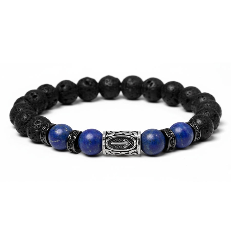 Unikátní pánský náramek Balder spojuje sílu přírody s mystikou dávných časů. Lávové kameny, vzniklé ze ztuhlé sopečné lávy, představují surovou energii země, která podle tradic pohlcuje negativitu a podporuje duševní rovnováhu. Sytě modré korálky z lapis lazuli doplňují náramek o prvek klidu, moudrosti a vnitřní harmonie. Dominantou šperku je výrazný ocelový korálek s runovým symbolem, který si můžete zvolit dle vlastního přání – jako osobní talisman nebo dárek s hlubším významem.Každý detail náramku je navržen s ohledem na pohodlí a praktičnost – korálky o průměru 8 mm jsou navlečeny na kvalitním pružném lanku, které se snadno přizpůsobí většině pánských zápěstí. Robustní, a přesto elegantní provedení z něj činí vkusný doplněk ke každodennímu outfitu i stylový šperk pro výjimečné příležitosti. Symbolika použitých kamenů i run činí z tohoto náramku nejen módní prvek, ale i osobní amulet.Šperky s přírodními minerály a runovými znaky jsou aktuálním trendem a představují výjimečný dárek pro muže, kteří si váží symboliky, tradic i moderního designu. Náramek Balder potěší tatínky, manžely i přátele – ať už jako dárek k narozeninám, výročí nebo jako gesto uznání. Runu zasíláme náhodně, ale na přání rádi dodáme vámi zvolený symbol – napište nám jej do poznámky k objednávce. 💡 Tip: Zvolte runový symbol, který nejvíce vystihuje vaše hodnoty – například Tiwaz pro čest a odvahu, Fehu pro hojnost nebo Algiz pro ochranu. Náramek tak získá hlubší význam a osobní sílu.