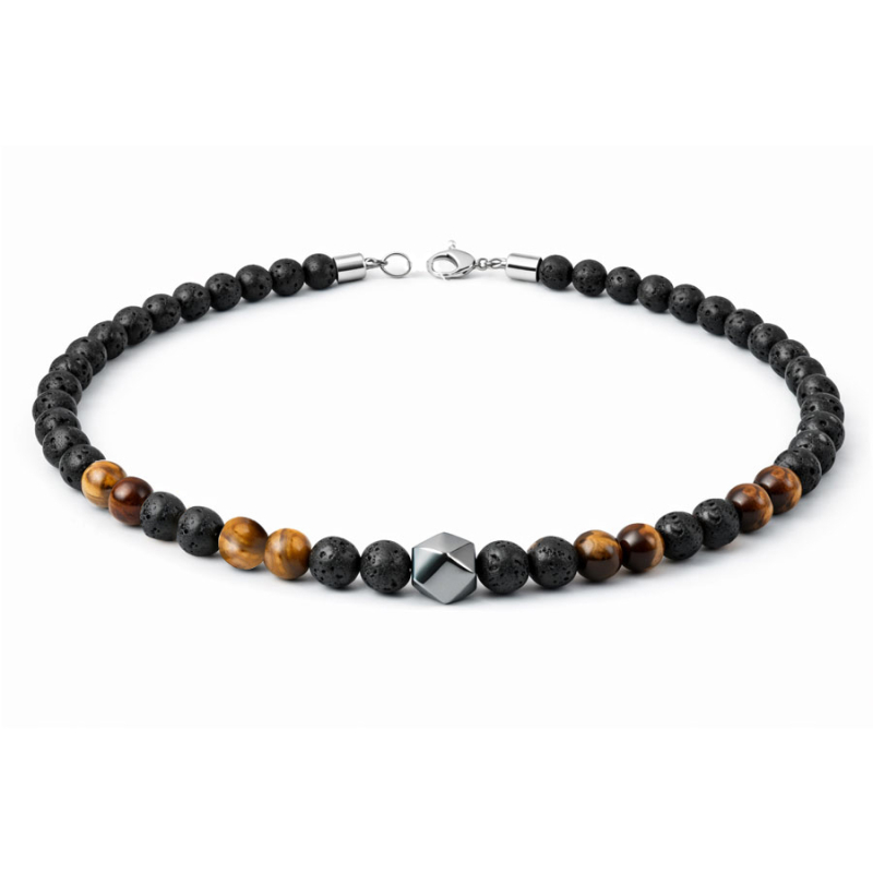 Představujeme vám korálkový náhrdelník Alberto, který spojuje sílu přírodních kamenů a krásný design. Tento náhrdelník je vyroben ze tří klíčových kamenů - lávového kamene, tygřího oka a hematitu, a každý z nich nese svůj vlastní význam a energii. Lávový kámen je symbolem odvahy a síly. Je to kámen, který vám pomáhá překonávat obtíže a dává vám energii k dosažení vašich cílů. Je ideálním společníkem pro ty, kteří hledají odhodlání a odvahu v každodenním životě. Tygří oko, které je známé jako ochranný kámen, přidává náhrdelníku sílu a odhodlání. Hematitový korálek dodává náhrdelníku lesk a eleganci. Hematit je známý pro svou schopnost posílit vaši vitalitu a zvýšit vaši odolnost proti stresu. S délkou 45 nebo 50 cm máte možnost si vybrat ten správný náhrdelník, který vám bude nejlépe vyhovovat.