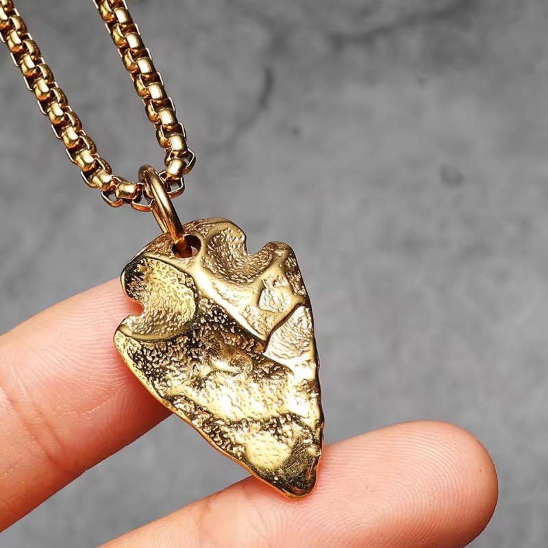 Pánský náhrdelník Golden Warrior's Spear je výrazným doplňkem pro muže, kteří se nebojí vystoupit z davu. Připomíná hrot kopí vytesaný z meteoritu a v kombinaci s masivním řetízkem působí jako symbol síly, odvahy a výjimečnosti. Povrchová úprava ve zlatém PVD odstínu podtrhuje jeho dominantní vzhled a dává mu luxusní lesk.Šperk je vyroben z kvalitní chirurgické oceli, která je odolná proti opotřebení i vlhkosti. Díky tomu si náhrdelník zachová svůj půvab po dlouhou dobu, ať už ho nosíte každý den, nebo jen při speciálních příležitostech. Detailně zpracovaný přívěsek ve tvaru hrotu zdobí robustní řetízek typu box, který zajišťuje pohodlné nošení i pevnost.Tento náhrdelník osloví každého, kdo má rád výrazné šperky s nádechem historie a symboliky. Skvěle doplní volnočasový i městský outfit a hodí se pro moderní muže se smyslem pro styl. Je to ideální dárek pro ty, kteří chtějí nosit sílu, odvahu a výjimečnost i ve svém každodenním vzhledu. 💡Tip: Darujte náhrdelník Golden Warrior's Spear muži, který si jde za svým cílem s odvahou a rozhodností. Stylový doplněk s hlubším významem potěší i jako originální dárek k narozeninám, výročí či promoci.