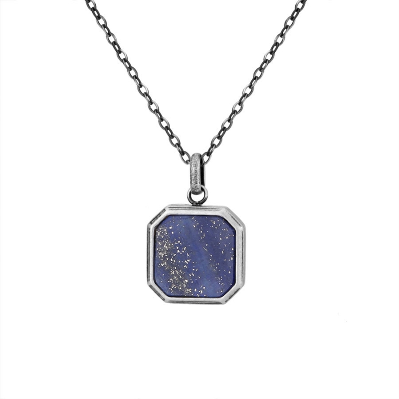 Pánský náhrdelník z ušlechtilé oceli s přívěskem z přírodního kamene lapis lazuli je ideální volbou pro muže, kteří hledají originální a osobitý šperk. Moderní hranatý tvar přívěsku vyniká svými hlubokými odstíny modré barvy s jemnými zlatavými odlesky, které jsou pro tento drahý kámen typické. Anticky šedý povrch oceli s jemnou patinou dodává celému designu nádech vintage elegance. Šperk je vyroben z kvalitní chirurgické oceli, která je odolná proti poškození i ztrátě barvy, a proto je vhodná pro každodenní nošení. Lapis lazuli v sobě snoubí přírodní krásu a osobitý výraz – každý kámen je jedinečný svou kresbou a barevnými nuancemi. Náhrdelník se snadno kombinuje s oblečením jak do práce, tak i pro volný čas. Tento ocelový náhrdelník je symbolem elegance a síly. Hodí se pro muže, kteří mají rádi nadčasové doplňky a chtějí vyjádřit svůj osobní styl prostřednictvím kvalitního šperku. Je skvělým dárkem pro muže, který ocení propojení jednoduchého designu a přírodních materiálů. 💡 Tip: Tento náhrdelník můžete doplnit ladícím náramkem a vytvořit tak dokonale sladěnou kombinaci. Zakoupit si ho můžete po kliknutí na tento odkaz ZDE.