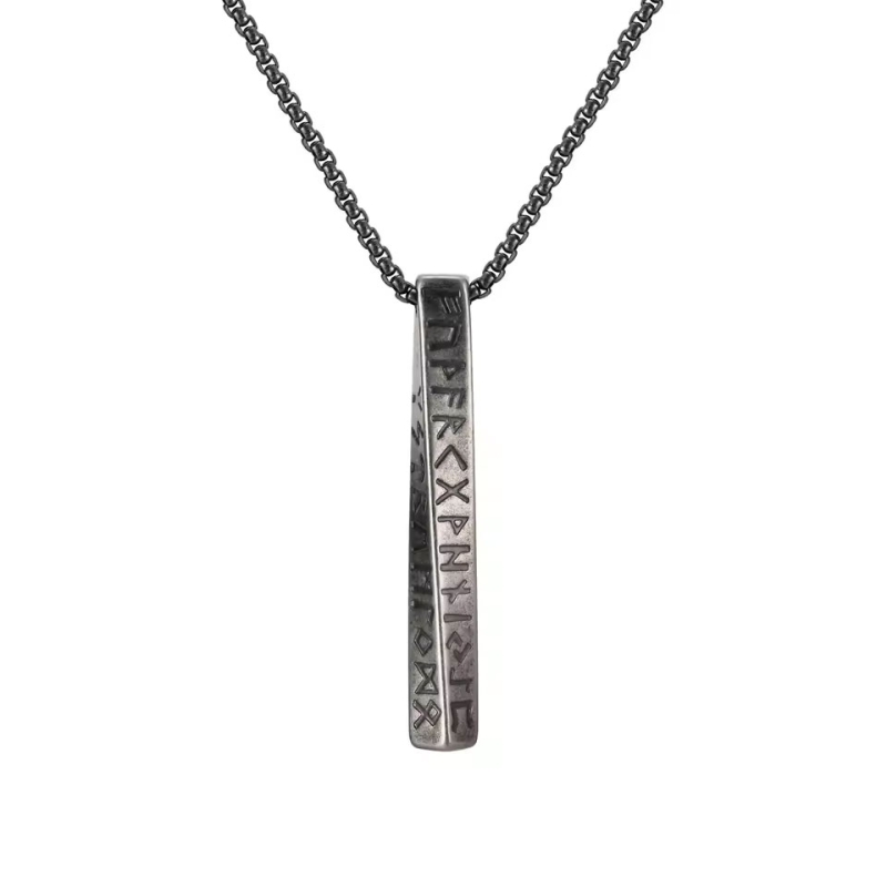 Tento pánský ocelový náhrdelník s runovým nápisem v sobě nese tajemství dávných časů a dodává každému outfitu výjimečný a sebevědomý výraz. Robustní řetízek z chirurgické oceli perfektně ladí s podlouhlým přívěskem, jehož povrch zdobí runové znaky inspirované severskou mytologií. Stylový kousek, který vyniká na každém černém tričku nebo pod rozepnutou košilí.Matná ocel s patinovaným efektem dodává šperku vintage vzhled, který působí přirozeně a zároveň výrazně. Díky svému jednoduchému a zároveň mužnému designu je náhrdelník ideálním doplňkem pro každodenní nošení, ale i jako symbolická ozdoba při zvláštních příležitostech. Minimalistická forma dává prostor symbolice, kterou si může každý vyložit po svém.Šperk je vyroben z kvalitní chirurgické oceli, která je odolná vůči poškrábání a nezpůsobuje alergie. To z něj činí nejen estetický, ale i praktický doplněk. Hodí se k vrstvení s dalšími náhrdelníky, nebo může dominovat samostatně. 💡Tip: Tento náhrdelník perfektně vynikne v kombinaci s černým tričkem, koženou bundou nebo lněnou košilí. Skvěle se hodí i k jiným šperkům s historickým či vikingským nádechem – například k náramku s lávovými kameny.