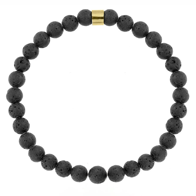 Pánský náramek Fernando Gold - 6 mm lávový kámen, Černá 25 cm
