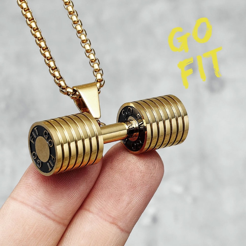 Představujeme vám tento jedinečný ocelový náhrdelník ve tvaru činky, který je dokonalým doplňkem pro každého fitness nadšence. Vyroben z kvalitní nerezové oceli, náhrdelník nejenže zaujme svým robustním designem, ale také nabízí vysokou odolnost a dlouhou životnost. Zlatá povrchová úprava dodává šperku luxusní vzhled a zvýrazňuje jeho detailní zpracování. Činka na přívěsku, zdobená nápisem "GO FIT", je symbolem síly, odhodlání a vytrvalosti – hodnot, které jsou klíčové v každodenním životě i ve fitness. Délka řetízku je 60 cm, což zajišťuje pohodlné nošení a perfektní padnutí na krk. Díky svému modernímu a výraznému designu je tento náhrdelník ideální pro každodenní nošení, ať už do posilovny, nebo jako stylový doplněk k vašemu běžnému outfitu. Tento ocelový náhrdelník je skvělým dárkem pro každého, kdo miluje fitness a chce vyjádřit svou vášeň prostřednictvím jedinečného šperku. Přidejte tento stylový náhrdelník do své kolekce a nechte se inspirovat jeho silou a elegancí.