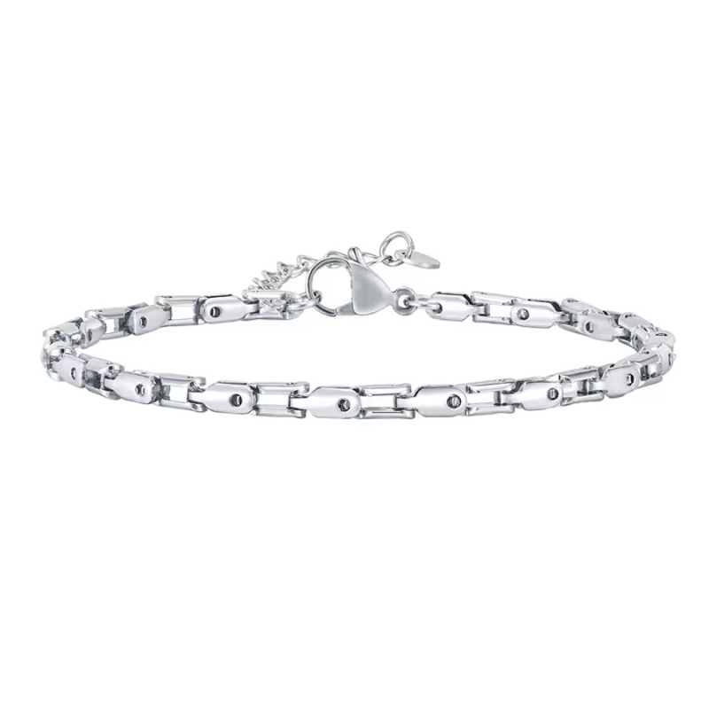 Elegantní pánský náramek z kvalitní chirurgické oceli vytváří dojem moderní střídmosti a čistého designu. Jeho úzký, 3mm řetízkový profil působí lehce, ale současně pevně a precizně – díky tomu se náramek snadno kombinuje s každodenním oblečením i formálními outfity. Každý článek je pečlivě zpracovaný a společně tvoří stylový doplněk, který vás bude doprovázet při práci, na cestách i ve volném čase.Praktická délka 18 cm doplněná o 5cm prodlužovací řetízek umožňuje upravit velikost dle potřeby, takže perfektně sedne každému zápěstí. Chirurgická ocel zajišťuje vysokou odolnost, stálý lesk a dlouhou životnost bez nutnosti náročné údržby. Náramek je skvělou volbou pro muže, kteří oceňují čistý styl, minimalistickou estetiku a nadčasové provedení. 💡 Tip: Skvěle se doplňuje s dalšími doplňky z chirurgické oceli – například s jednoduchým prstenem nebo tenkým náhrdelníkem. Kombinace vytváří soudržný a mužně vyvážený vzhled.