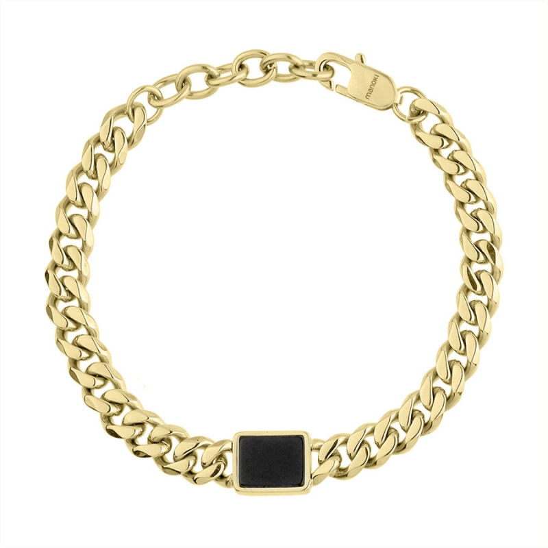 Tento náramek z nerezové oceli ve zlaté úpravě s achátovým prvkem představuje dokonalé spojení nadčasové klasiky a moderního stylu. Inspirován popkulturou 70. a 80. let, tento design odráží módní trendy té doby, kdy šperky s acháty nosily ikony jako David Bowie, Mick Jagger či Elton John. Achát se tehdy těšil velké oblibě díky svému elegantnímu vzhledu a hlubokému černému tónu, který zdůrazňoval jedinečnost a smysl pro detail. V té době byly šperky s acháty populární pro jejich schopnost vyjádřit osobitý styl a dodat outfitu punc exkluzivity. Tento náramek přenáší tento ikonický design do současnosti, přičemž zůstává věrný estetice vintage elegance. Robustní řetěz typu curb zajišťuje pevnost a pohodlí při nošení, zatímco zlatý tón v kombinaci s achátem vytváří sofistikovaný kontrast, který osloví muže s vytříbeným vkusem. Tento náramek je perfektní volbou pro milovníky šperků, kteří hledají výrazný doplněk inspirovaný legendami hudebního světa. Skvěle se hodí k vrstvení s dalšími náramky či hodinkami a podtrhuje styl, který je nadčasový, odvážný a stále aktuální. Pro dokonalý look doporučujeme i ocelový náhrdelník ve stejném stylu, který zakoupíte ZDE. Tento set vám dodá jednotný a sofistikovaný vzhled, který upoutá pozornost při každé příležitosti.