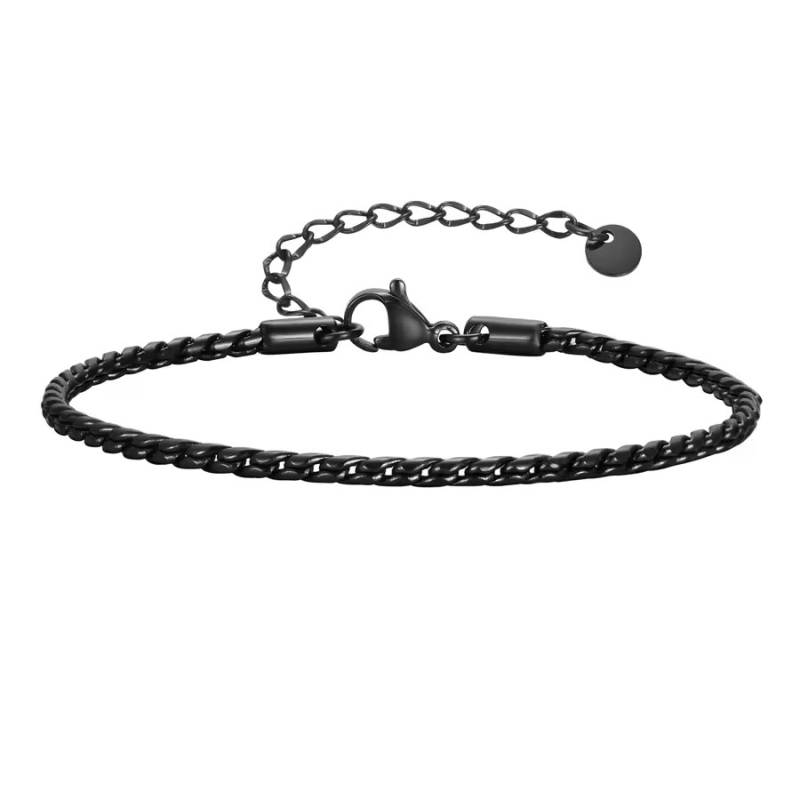 Elegantní černý pánský náramek z chirurgické oceli zaujme svou decentní siluetou a moderním vzhledem. Jemný řetízek o šířce 2,5 mm je povrchově upraven technologií černého PVD, která dodává náramku sytý tmavý lesk i výjimečnou odolnost. Délka 18 cm s možností prodloužení o dalších 5 cm zajišťuje, že náramek pohodlně padne na většinu zápěstí a přizpůsobí se individuálnímu stylu nositele.Tento minimalistický doplněk v sobě spojuje precizní zpracování, kvalitní materiály a nadčasový design. Skvěle doplní jak formální, tak ležérní outfit a stane se nenápadným, ale výrazným prvkem každodenního stylu moderního muže. 💡 Tip: Náramek se hodí i k večernímu outfitu – v kombinaci s černou košilí působí stylově a sebevědomě.