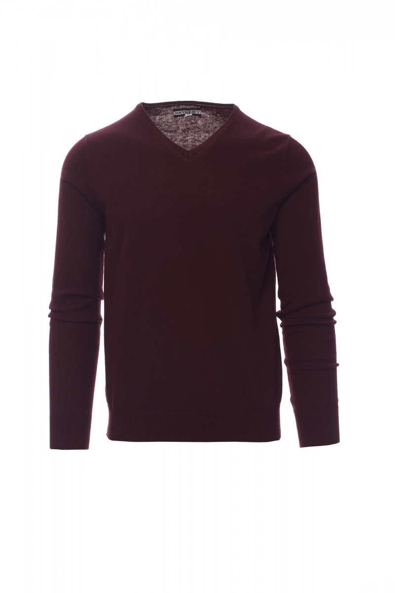 Pánský svetr s výstřihem do V s jemným žebrovaným límcem, manžetami a lemem, v punčochovém stehu a plně tvarovaný bez švů.