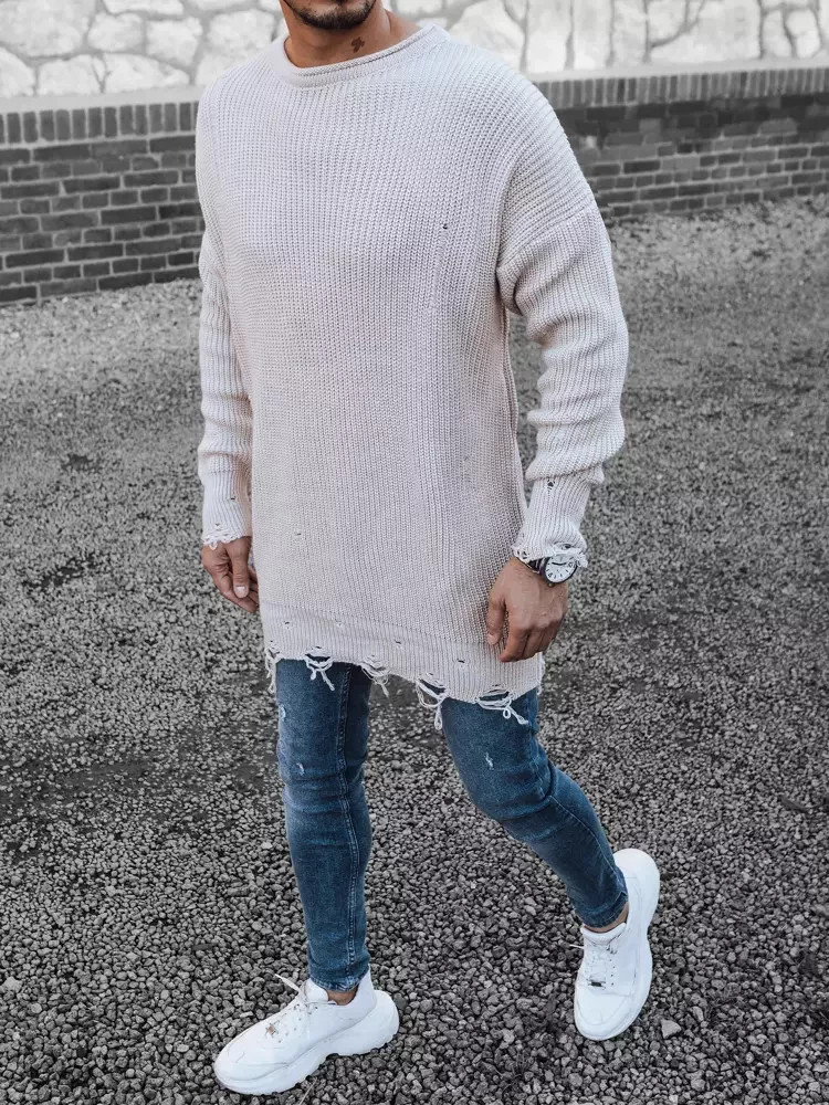 Senzační pánský svetr. Vyrobeno z měkké a příjemné na dotek. Kulatý výstřih Spodní část a rukávy zakončené lemy. Módní oděrky. Svetr se hodí na každou postavu. Ideální pro každodenní použití. Složení: 70% akryl, 30% bavlna.