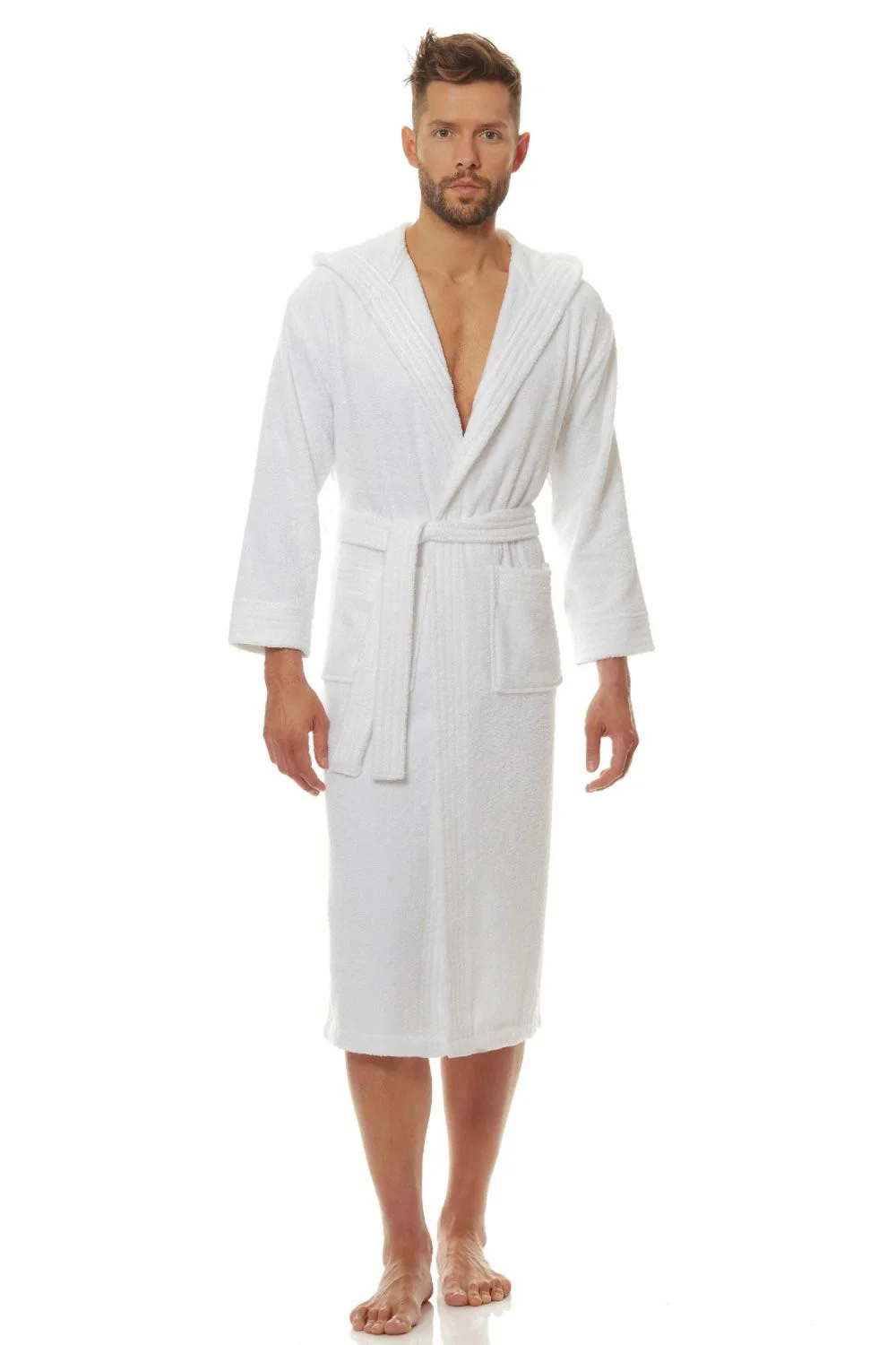 Pánský župan klasického střihu 2104 L&L - z měkké a příjemné bavlny - na hrudi má malou nášivku - bez zapínání, zavazuje se v pase páskem - na bocích našité kapsy - s kapucíMateriálové složení: 100% bavlna Dámské velikosti S/M L/XL Výška (cm) 164 170 Obvod přes prsa (cm) 96 96 Obvod přes boky (cm) 104 108 Pánské velikosti L XL Výška (cm) 176 182 Obvod přes prsa (cm) 114-116 118-120 Obvod přes boky (cm) 112 116