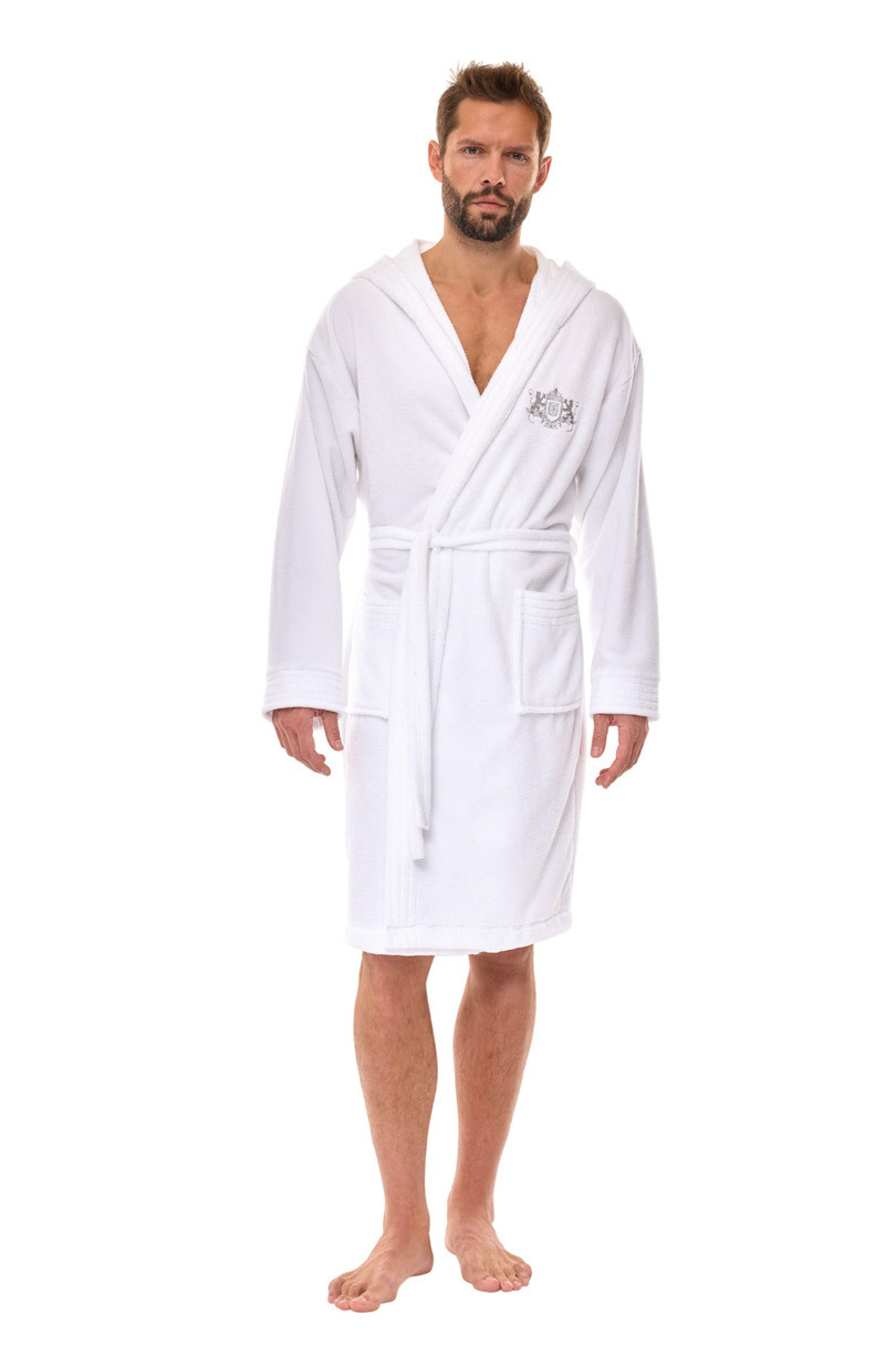 Szlafrok męski 2521 to połączenie elegancji, komfortu i nowoczesnych materiałów. Wykonany z wysokogatunkowej mieszanki bambusa i bawełny, oferuje wyjątkową miękkość, przewiewność oraz naturalne właściwości antybakteryjne. Krój z kapturem i praktycznymi kieszeniami zapewnia wygodę użytkowania, a klasyczna długość do kolan sprawia, że idealnie sprawdzi się zarówno po kąpieli, jak i podczas relaksu w domu. Subtelne haftowane logo dodaje całości luksusowego charakteru. Dostępny w klasycznej bieli oraz eleganckim granacie. Skład: 60% Bambus, 40% Bawełna