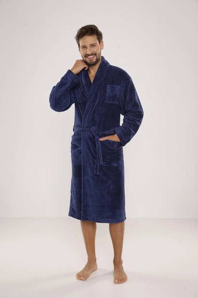 Pánský župan De Lafense 811 Plush M-2XL tmavě modrá XXL