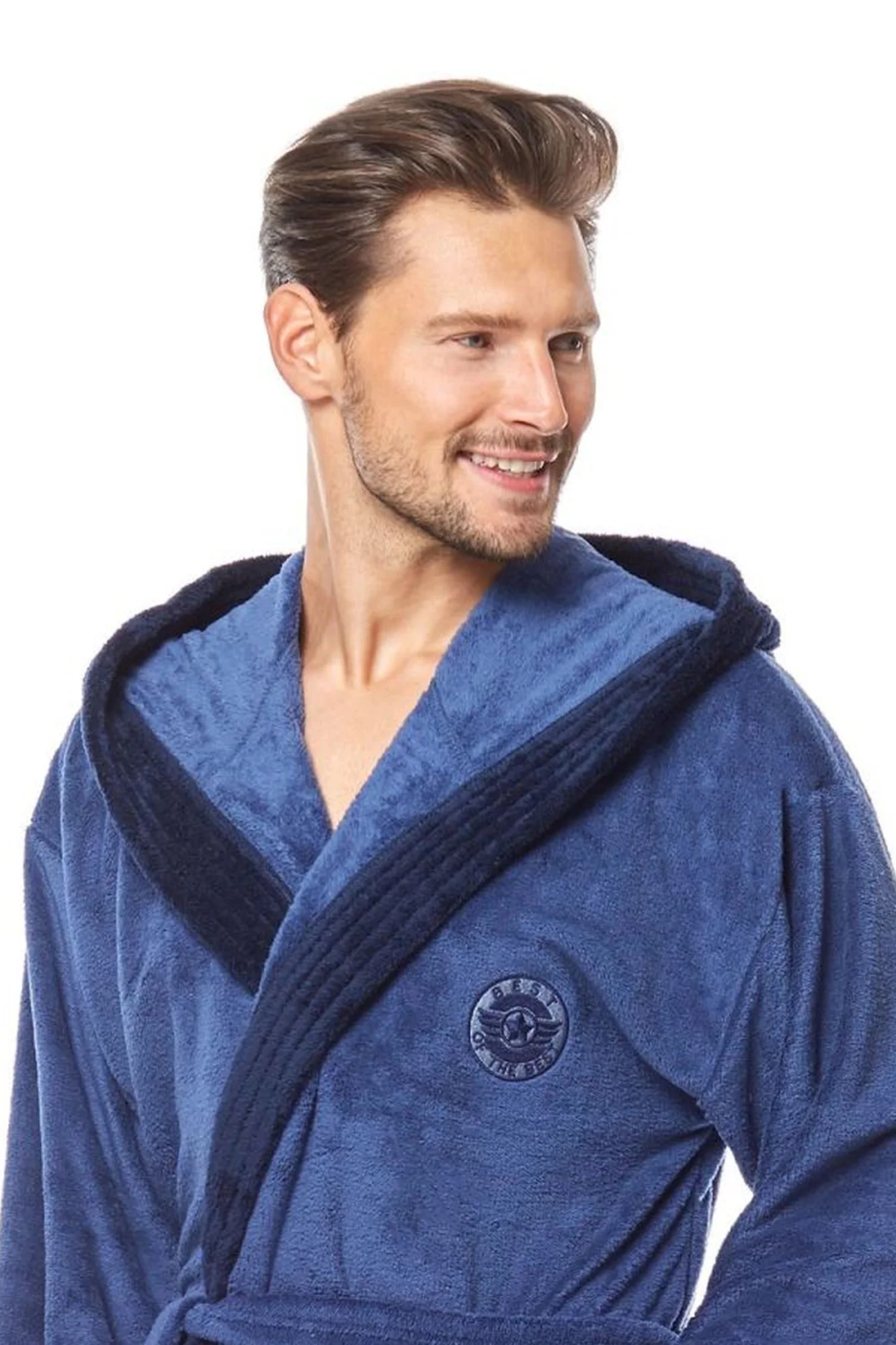 Pánský župan klasického střihu George L&L - na hrudi má malou nášivku - světle modrá barva s tmavě modrým lemováním - bez zapínání, zavazuje se v pase páskem - na bocích jsou našité kapsy - s kapucíMateriálové složení: 100% polyester Dámské velikosti S/M L/XL Výška (cm) 164 170 Obvod přes prsa (cm) 96 96 Obvod přes boky (cm) 104 108 Pánské velikosti L XL Výška (cm) 176 182 Obvod přes prsa (cm) 114-116 118-120 Obvod přes boky (cm) 112 116