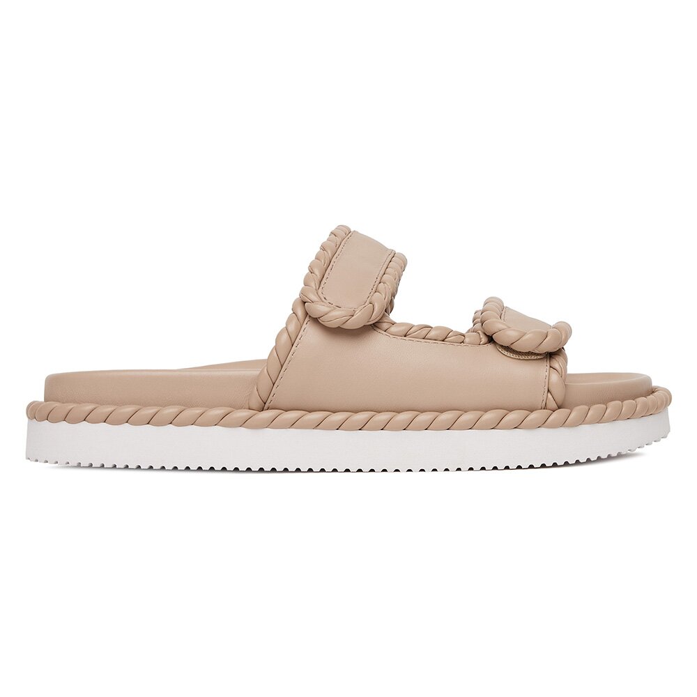 Pantofle BÉŽOVÁ Přírodní kůže (useň) - Lícová,Imitace kůže/-Ekologická kůže Badura BURDOCK-124AL0955 Beżowy Badura Dámské/Obuv/Pantofle