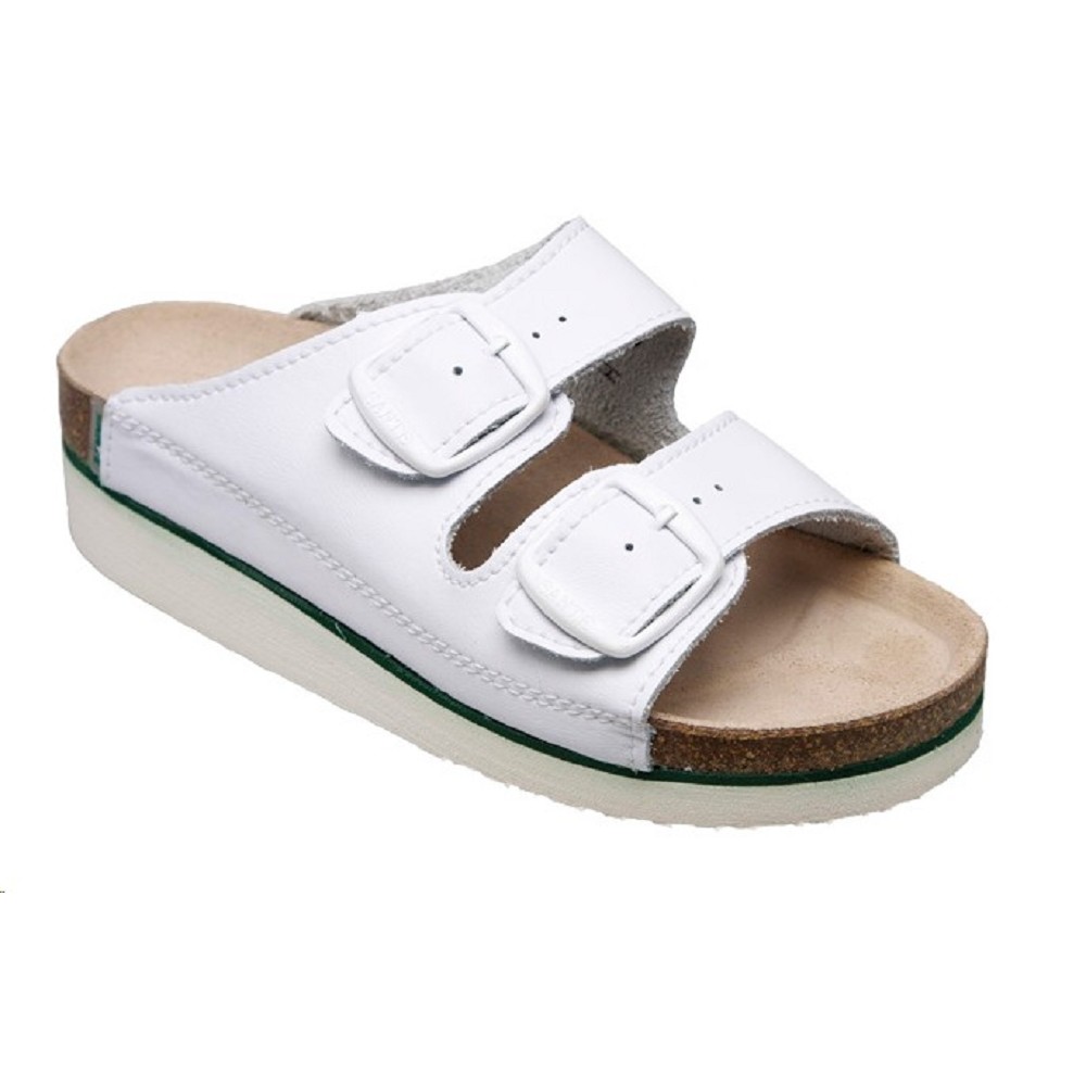 Pantofle dámské Santé N/25/10/H/K klínek, bílá Pohodlné dámské pantofle na klínku opatřené speciální mezivrstvou, která tlumí nárazy. Velikost 2-8